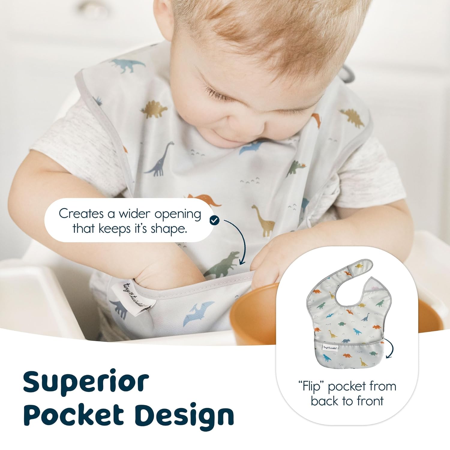 - BABY ESSENTIALS MUST HAVES: Tiny Twinkle presents essential baby feeding supplies with our baby feeding bibs.Crafted from soft,lightweight,water-repellent recycled polyester,these waterproof bibs for baby boy or girl are designed to keep messes at bay.Our baby food bibs feature a catch-all pocket to capture spills,ensuring your little one stays clean during mealtime.