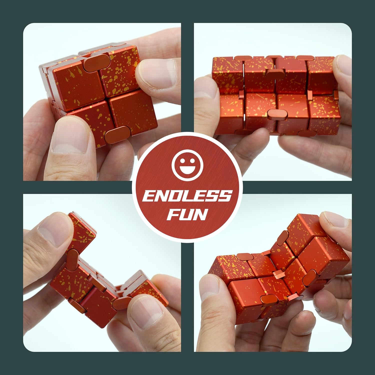 - INFINITY CUBE METAL - Our fidget infinity cube is made of solid aluminum alloy, it is not too lightweight or too heavy and feel nice in the hand, CNC build rounded corners processing. It is very sturdy and works very smoothly