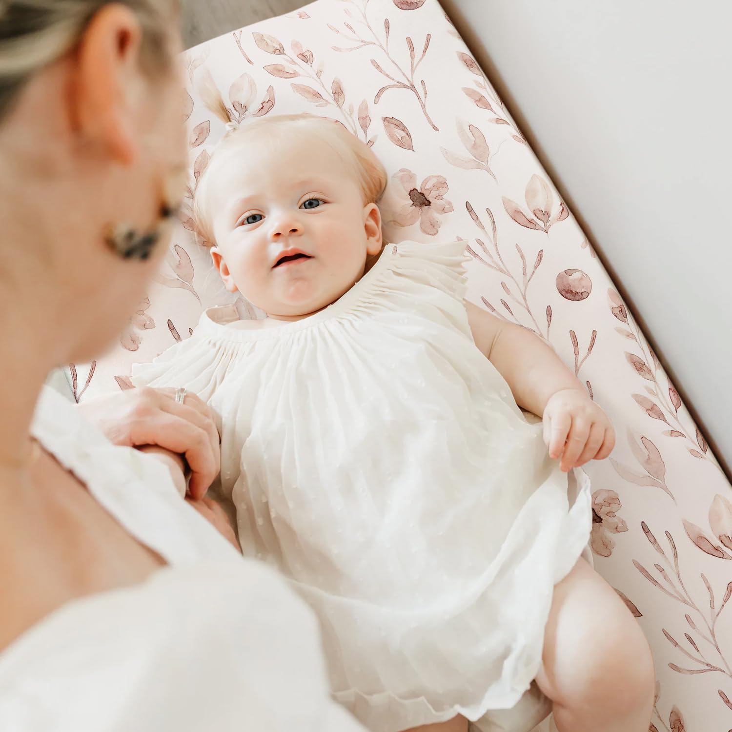 - Designed by Moms for Moms - we know how hard it can be to find a changing pad cover that is easy to use and beautifully designed. We started this company because weβre customers just like you. So we provide a classic, Beautiful Blush Pink Floral and Cute Animals pattern and that will put the finishing touches to any bedding.
