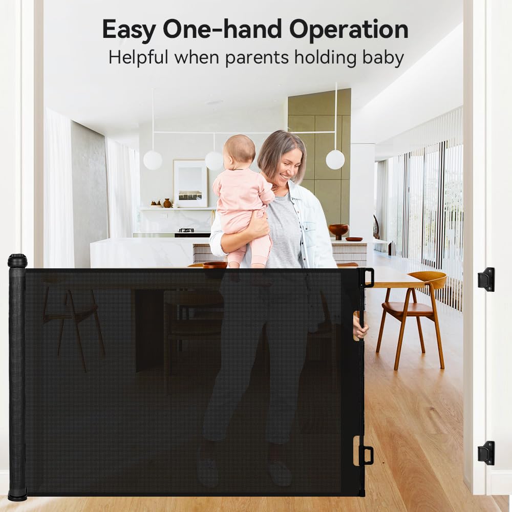 - Lockable Safety Design: The retractable pet gate features a lockable design at the top for added security. A press and slide switch locks or unlocks the extra long pet gates, with red and green indicators for clear understanding. The hidden lock keeps the child gate secure from inquisitive hands. NOTICE: When the indicators shows red, it can only be locked and not stretched outward