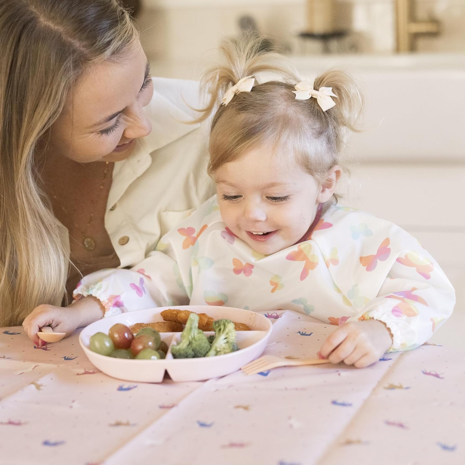 - EASY TO USE: Designed for baby-led weaning chaos, our waterproof baby bibs (6-24 months) feature a no-scratch closure that stays put during tugging but is also easy to remove. The 100% recycled polyester fabric wipes clean in seconds. New parents obsessed with baby feeding essentials love how these toddler-proof baby bibs transform messy high chair meals into stress-free bonding time. Perfect for baby bibs or toddler bibs.