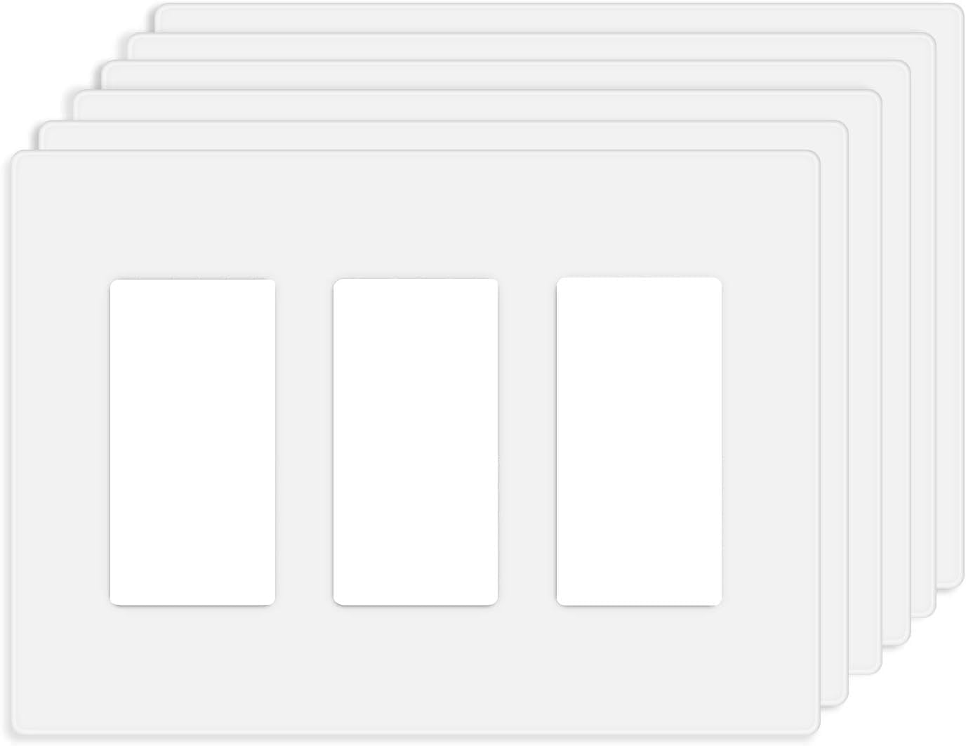 3-Gang Screwless Decorator Wall Plate Cover Switch Outlet Electrical Faceplate for Light Switche, Smart Switch, Receptacle, Dimmers, USB Outlet, GFCI, Child Safe Cover Plate, White (6-Pack)