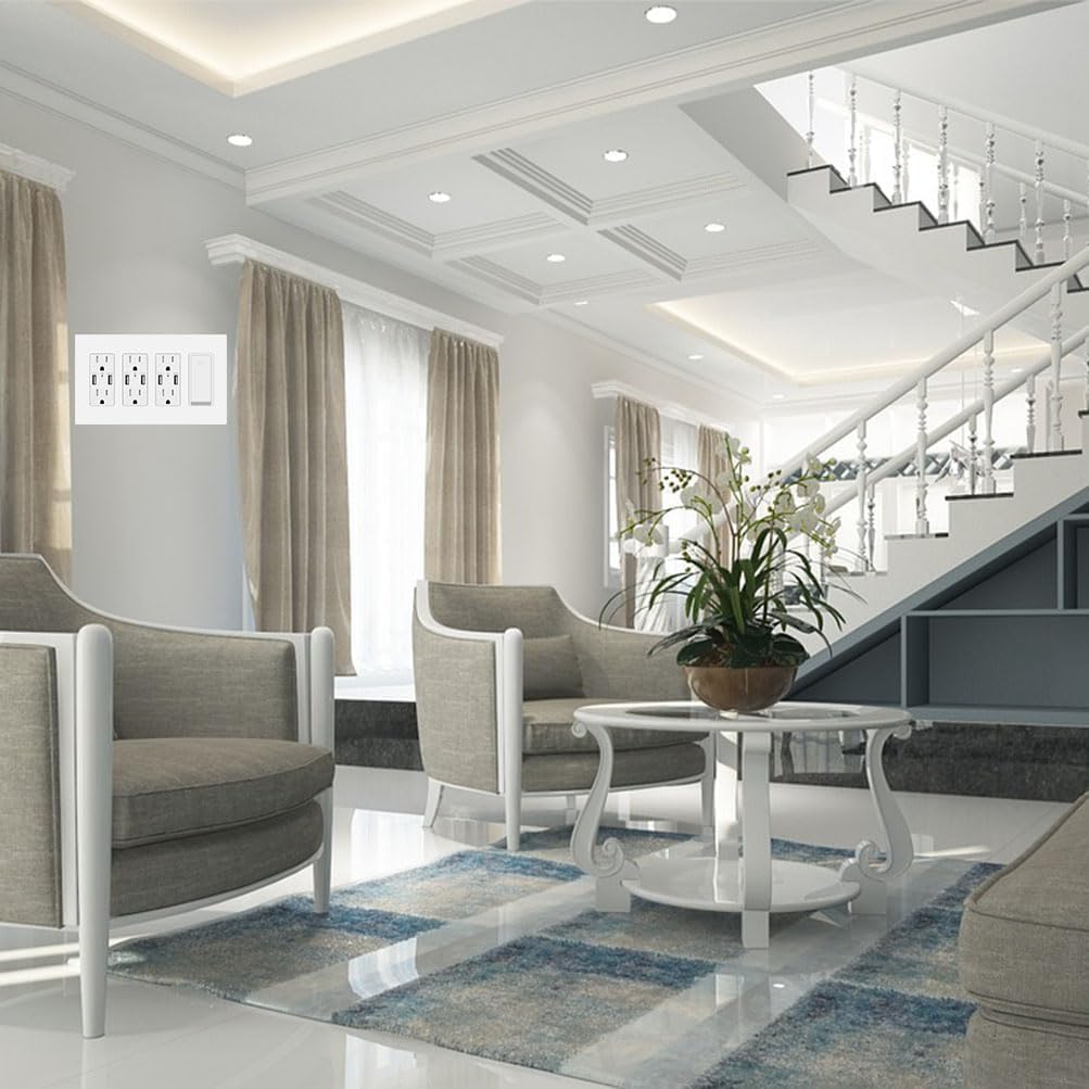 - 【Compatible Widely】Screwless quadruple wall plates work with all kinds of decorator-style switches and outlets including dimmer, light switch, smart switch, rocker switches, sensors, timer switches, GFCI outlets, electric outlets and and single/double/compo switches, etc.
