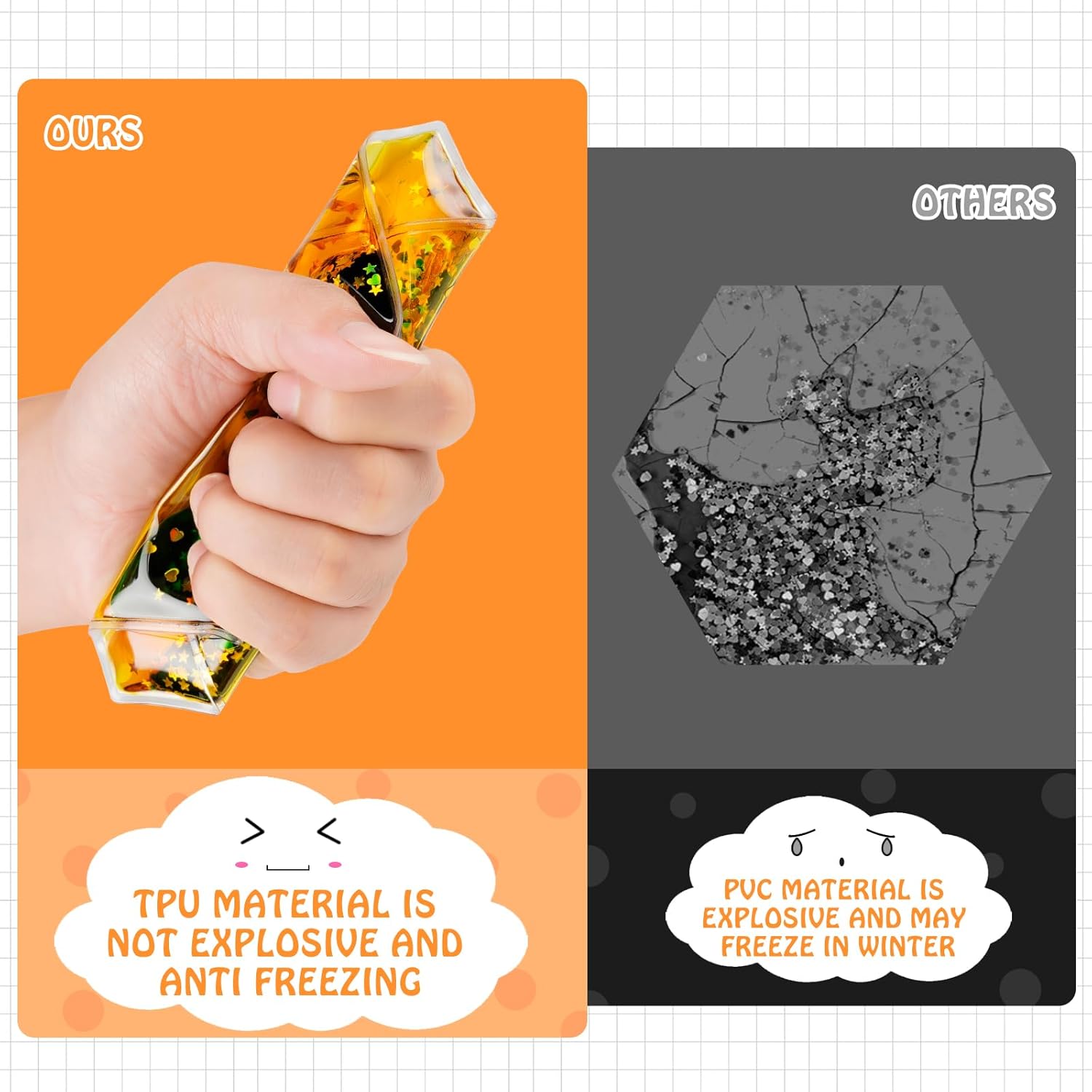 - Functional Design: Liquid sports gel toys not only relieve stress and anxiety, they also help improve focus and concentration and promote the development of sensory cognitive abilities. They are also a sensory tool that provides active play, learning and activities for young children.