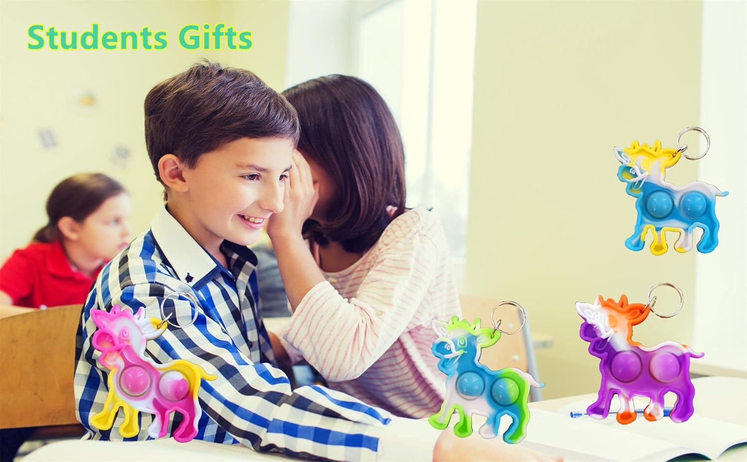 100 Packs Bulk cow Mini pop Fidget Backpack Keychain, boy and Little Girl,Kids birthday Party Favors,summer Students Bubble Prize gifts