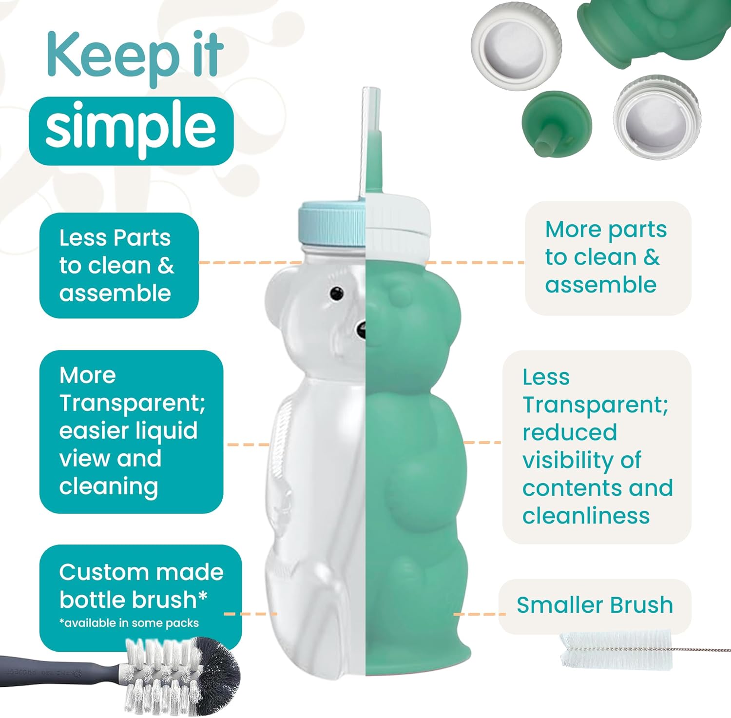 - Convenient Bottle Cleaner: Our straw training cups for babies come with a newly designed bottle brush featuring a replaceable head (sold separately). The compact and non-slip silicone handle makes cleaning these squeezable straw cups a breeze.