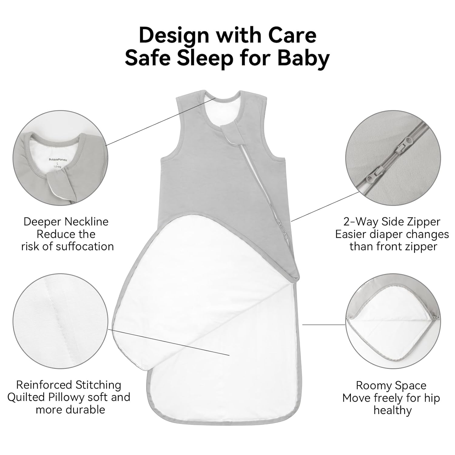 • IDEAL SLEEP SACK - BubblePanda baby sleep sack is made from luxurious rayon made from bamboo, known for its buttery softness. This hypoallergenic and breathable fabric helps regulate your baby's body temperature, wicking away sweat to create a soothing and comfortable atmosphere for babies' sleep.