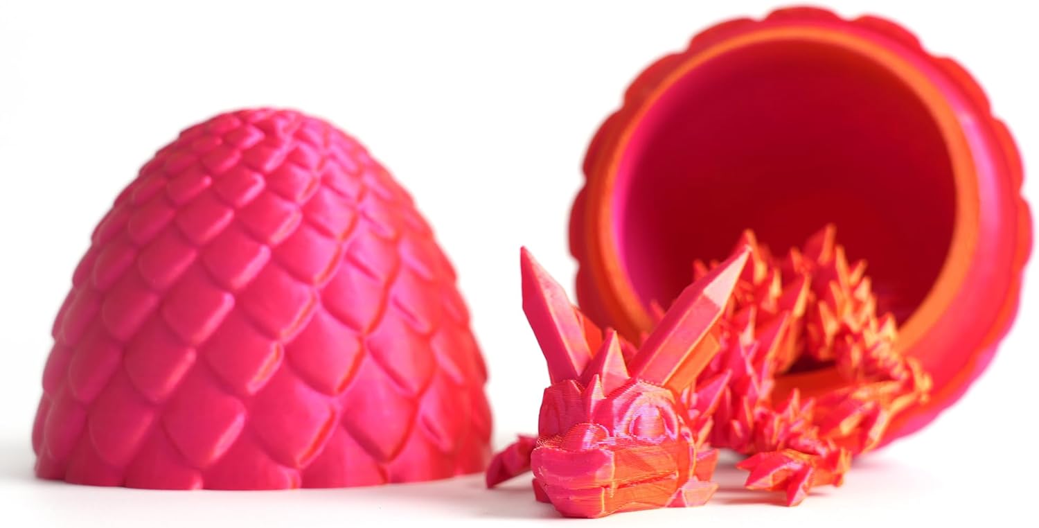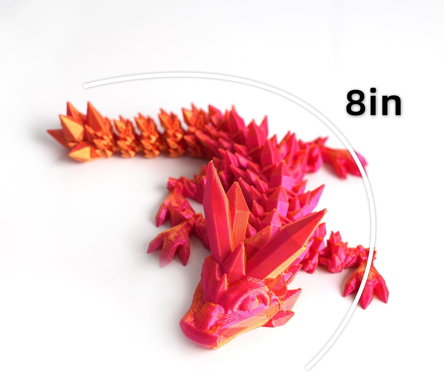 - Include: 1x 8in articulated flexible dragon and 1 egg. Note- Due to the nature of 3D Printing. The order of the colors will vary. Authorized by US designer Cinderwing.