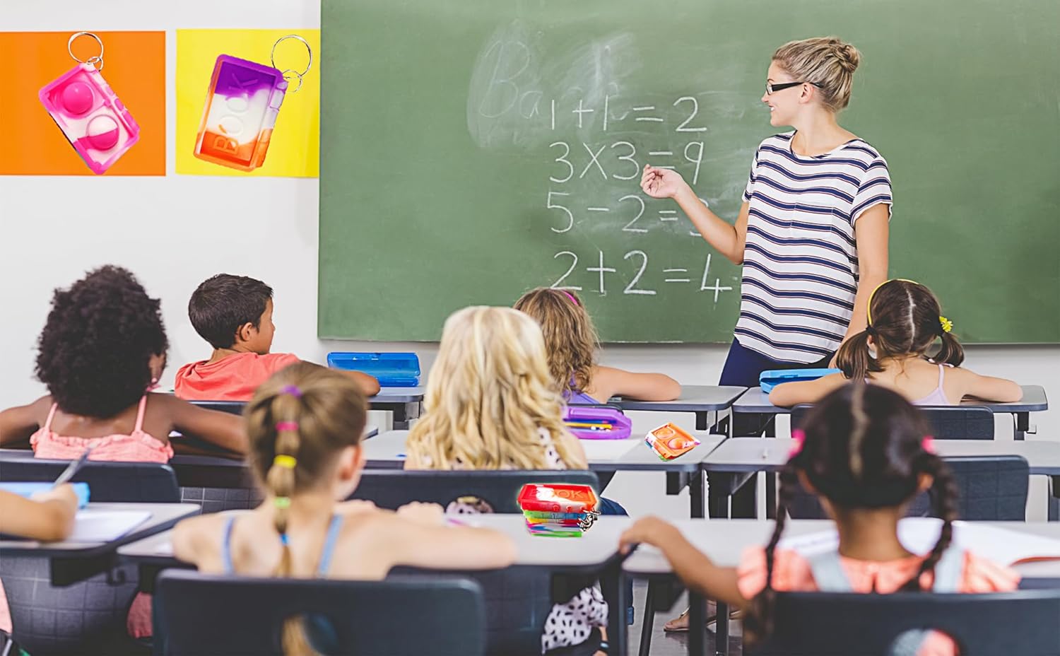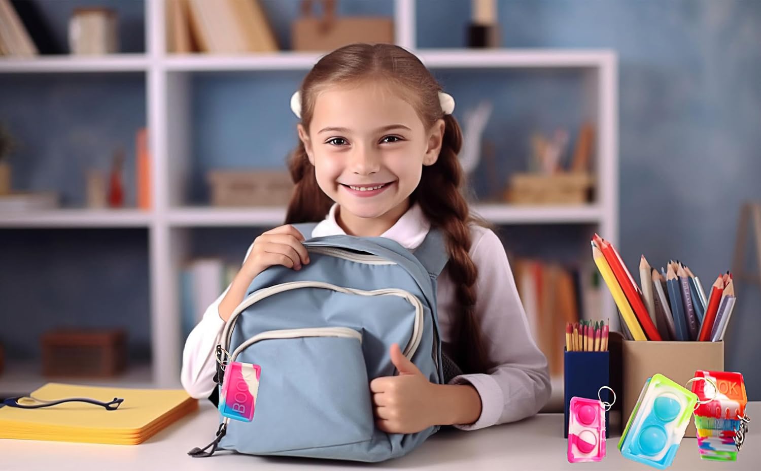 10 packs Bulk Books Backpack Keychain Mini pop Fidget , Birthday Party Favors,Students Bubble Prize for boy and Little Girl,Kids Classroom Summer Student Gifts