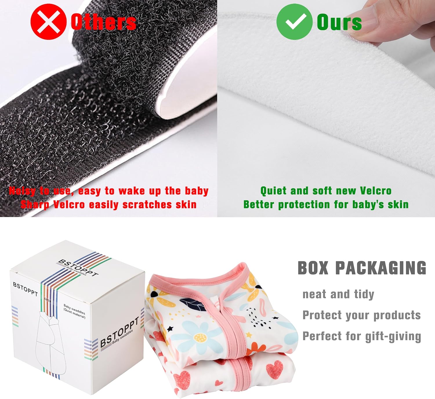 - Our swaddle wings are made of soft linkable new cotton fabric instead of the sharp velcro design of other products,Safer and more comfortable.The TOG rating is 0.5, and closing the wings TOG can be upgraded to TOG 1.0, providing proper comfort for mild seasons or climates.