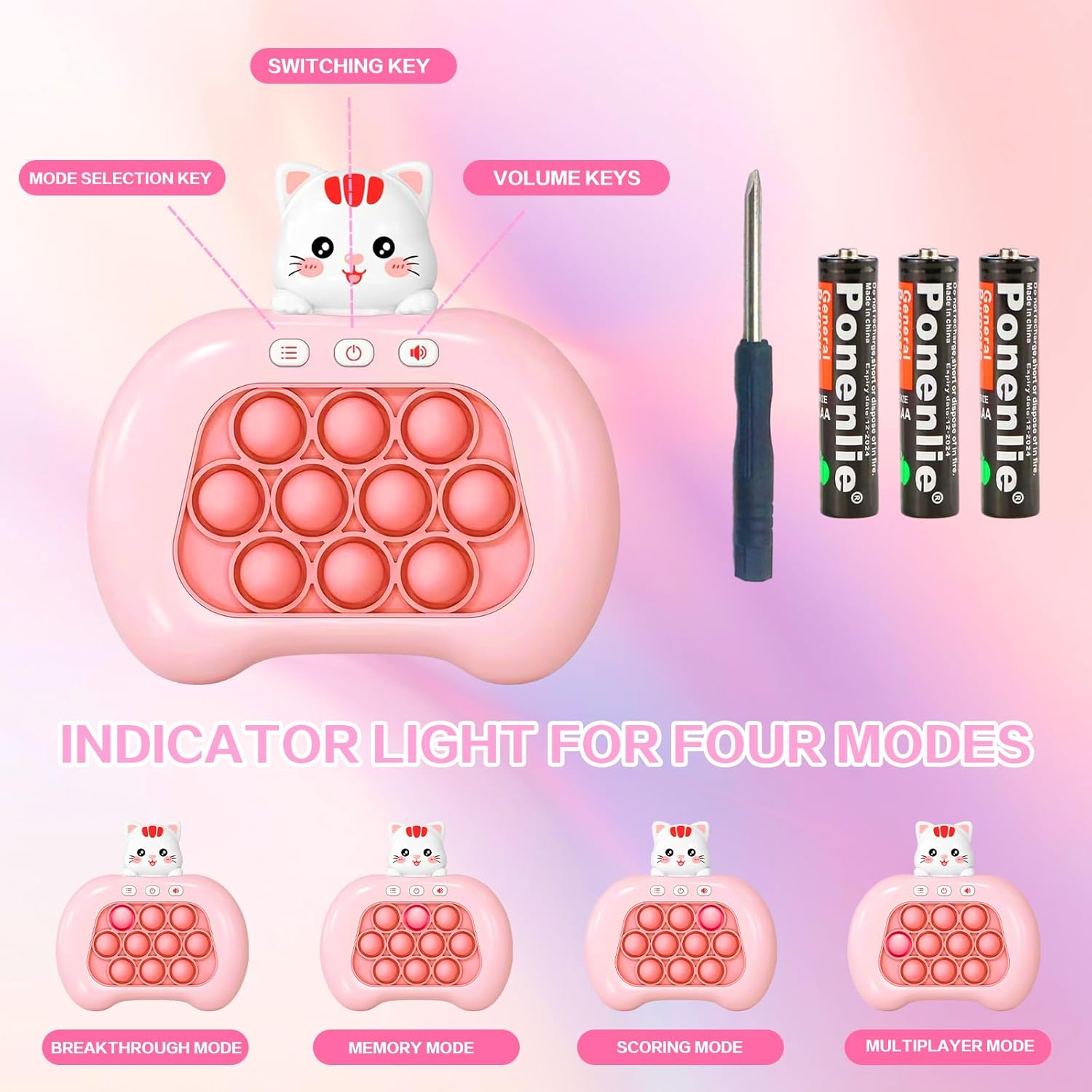 Fast Push Game,Sensory Toys Pop Game Machine,Handheld Fidget Console for Kids Adults, Birthday Gifts for Boys Girls-Pink cat