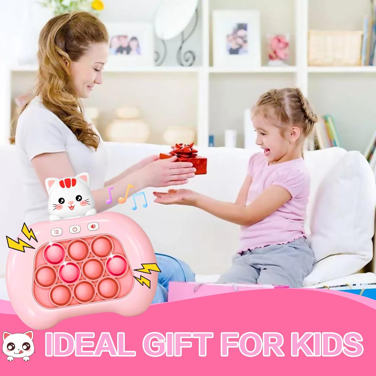 - 【Quick Push Pop Game It】 With their unique burst bubble mechanism and dynamic music Press the push pop to fidget sensory toy can reduce stress, fatigue or anxiety, bring you peace of mind, Kids will engage in positive thinking, hand-eye coordination, and brain training during play challenges filled with lights and sounds, promoting your child's sensory development.