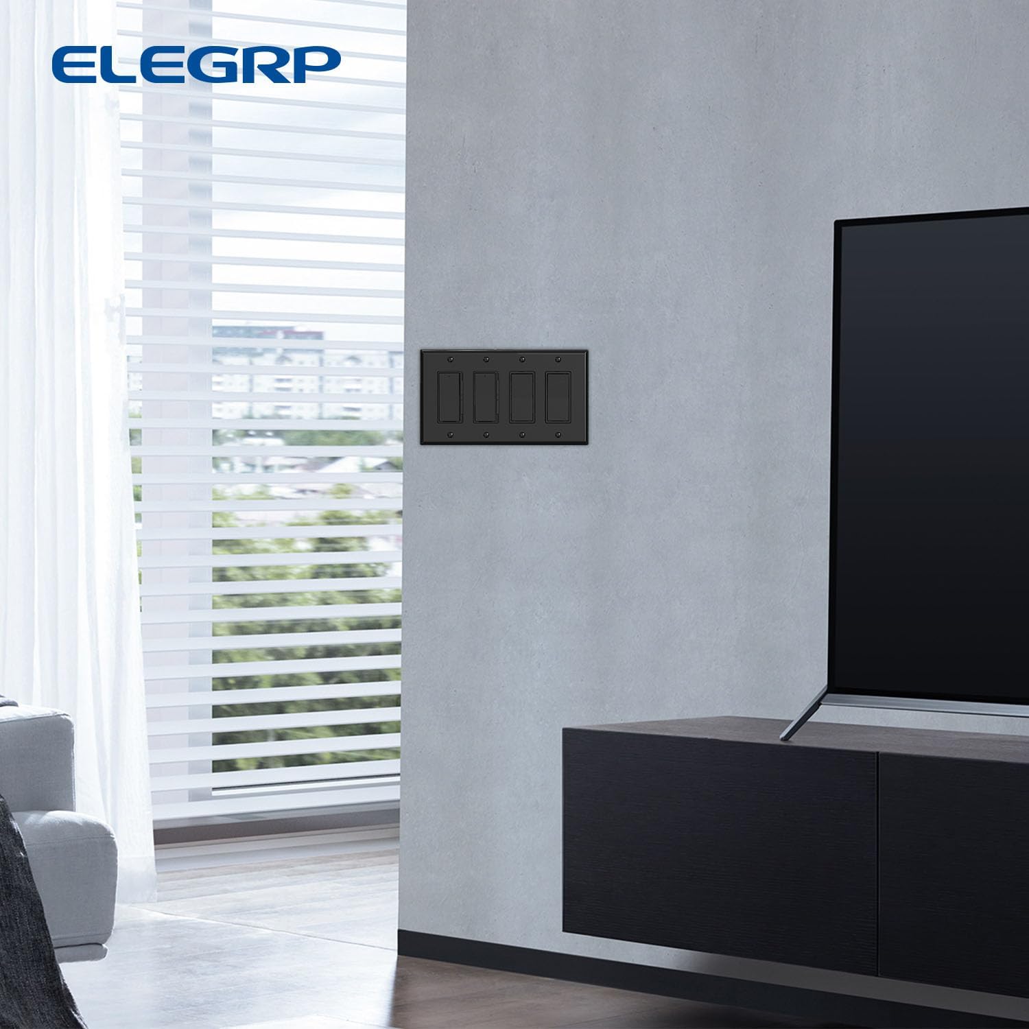 ELEGRP 4-Gang Decorative Wall Plates, Mid-Size 4.88" H x 8.57" L Unbreakable Thermoplastic Faceplate Cover for Decorator Receptacle Outlet Switch, UL Listed (2 Pack, Glossy Black)