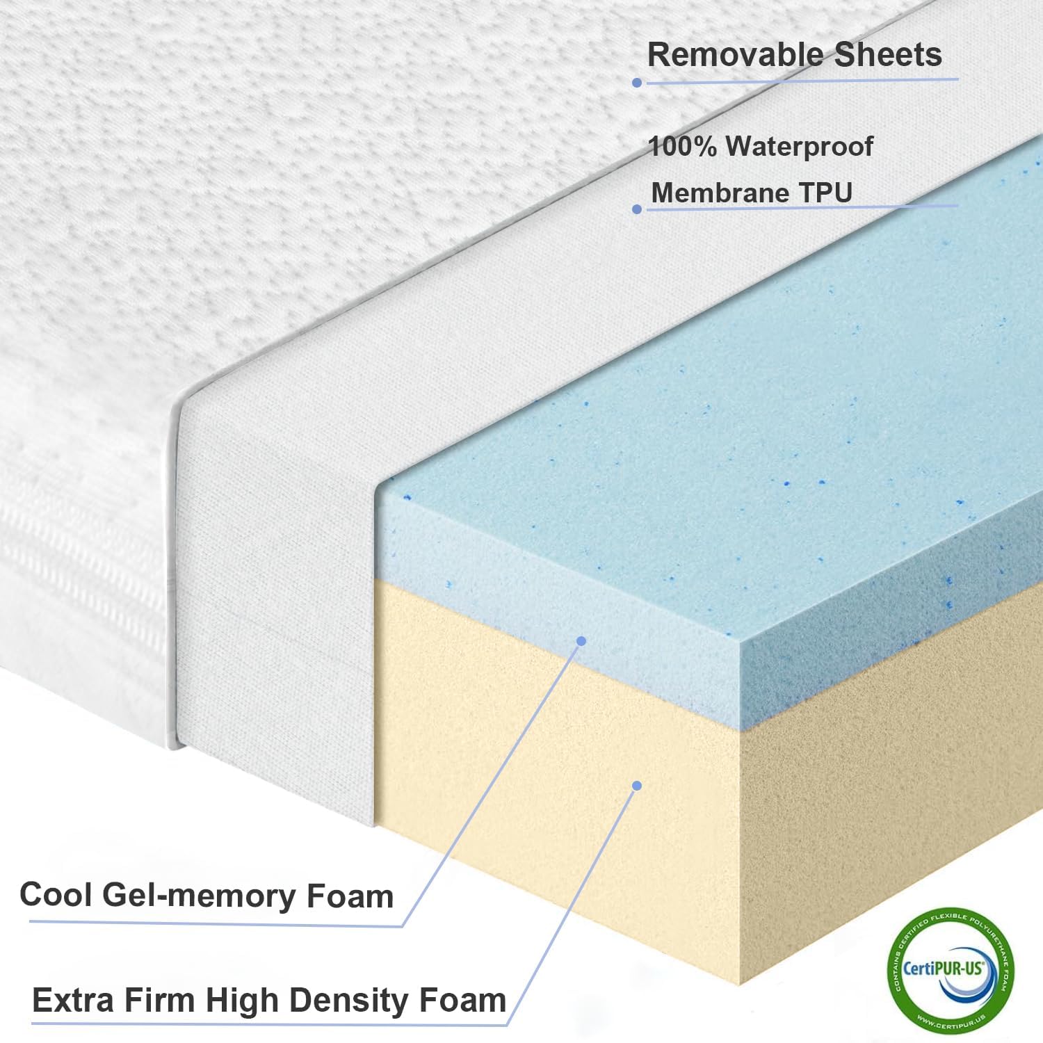 - ăWaterproofăThe inner surface of the bassinet mattress cover is covered with a high quality TPU waterproof membrane. that repels all other liquids, including fluids, perspiration, bed wetting, and stains. The waterproof feature protects the mattress and keeps it looking brand new.