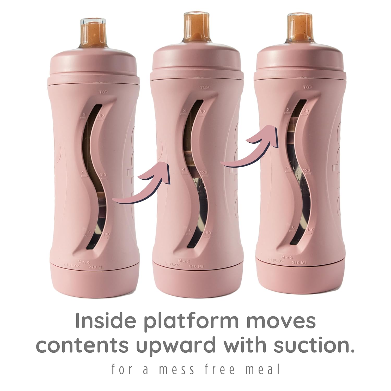 Subo Baby Food Bottle | No Mess Baby Toddler Self Feeder | Squeeze Free Design for Purees, Smoothies, Yogurt, Oatmeal, or Thickened Liquids | Reusable Silicone Washable Cup (Rose)