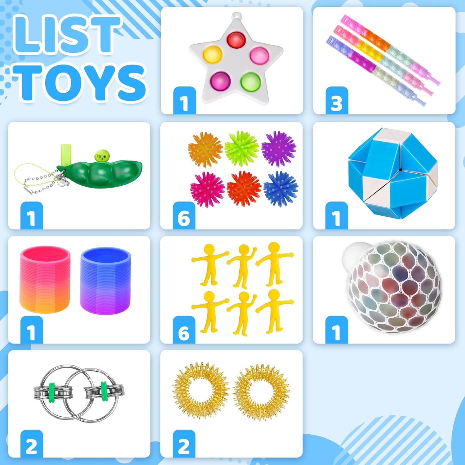 - 【Stress and Anxiety Reducing Games】: Invest in your well-being and discover the therapeutic benefits of our fidget toy sets. Experience the power of simple movements such as simply playing squeezing, stretching and flipping with these fidget toys and engage your senses to find peace amidst the chaos. Say goodbye to stress and anxiety, and embrace a newfound sense of calm with our stress and anxiety reducing games.