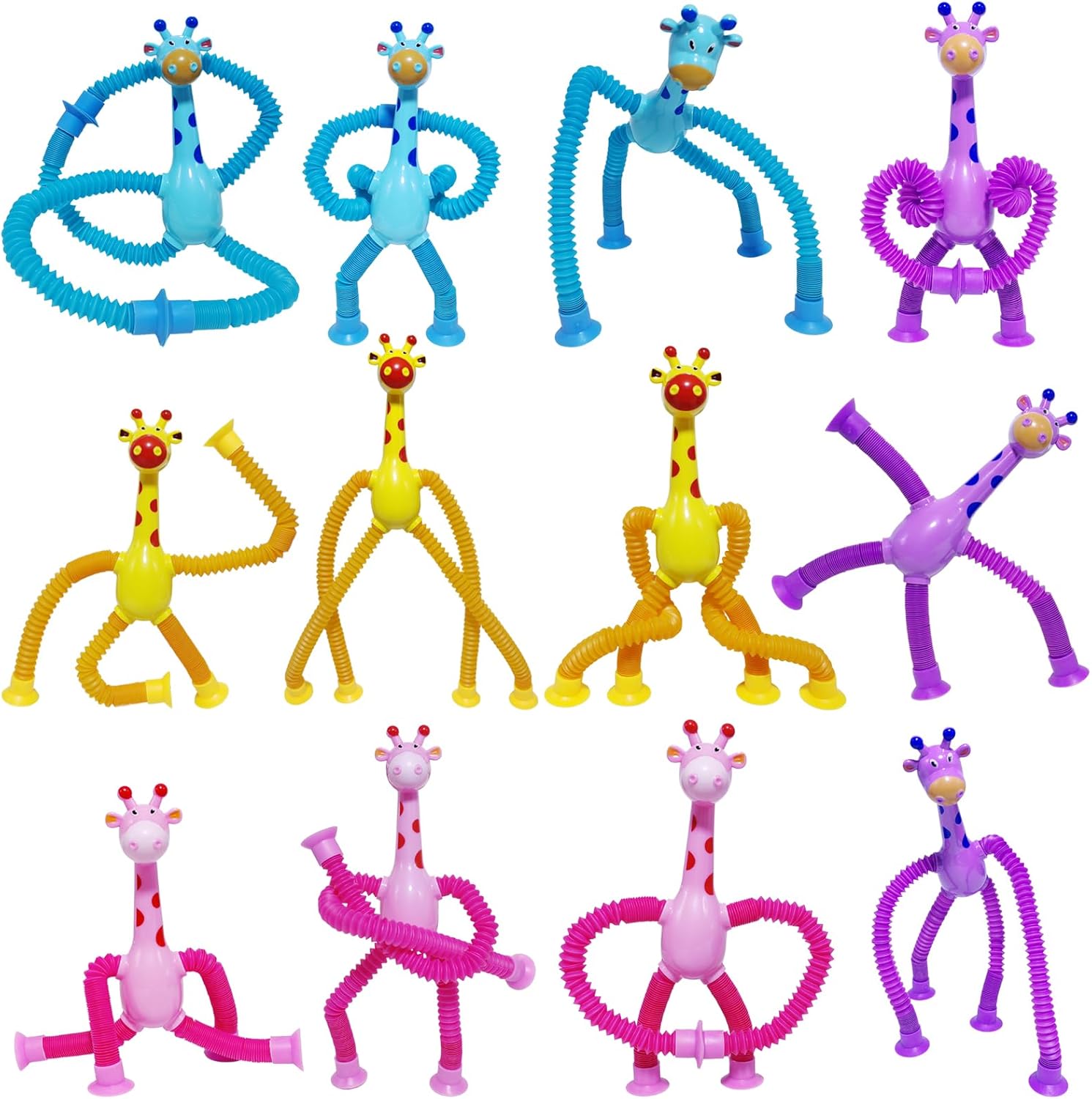 8Pcs Telescopic Suction Cup Giraffe Toys, Suction Pop Tubes Giraffe Sensory Toys, Pop Fidget Toys for Toddler Travel, Easter Basket Stuffers Party Favor Birthday for Kids Boys Girls