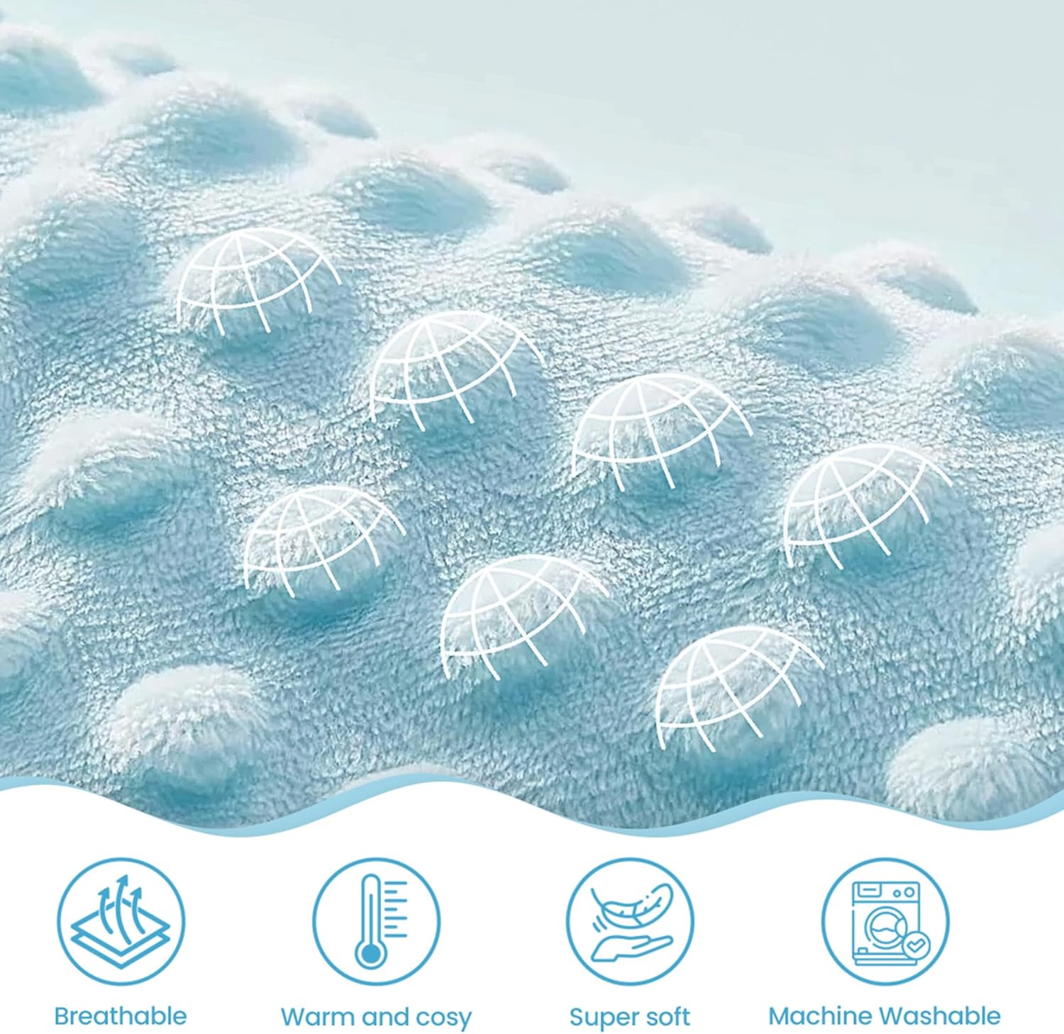 - Comfortable material: the baby blanket is light, ensuring your little one stay comfortable all year round; one side features a smooth surface while the other is 3D dotted