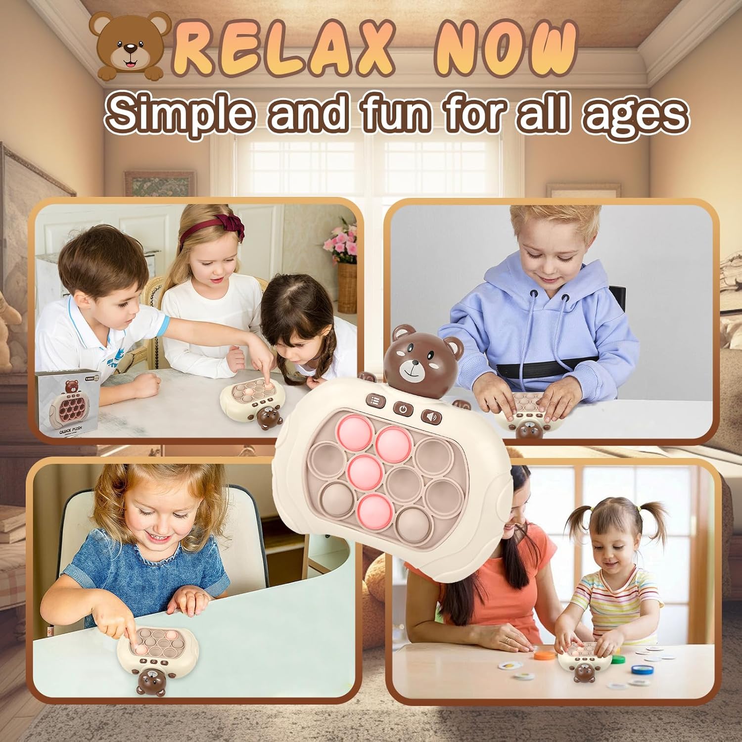 Toymaker Quick Push Game Console Handheld Game Toys Puzzle Popping Press Toy Interesting Push Bubble Fidget Stress Relief Toys Birthday Presents for 3+ Years Old Kids (Bear)