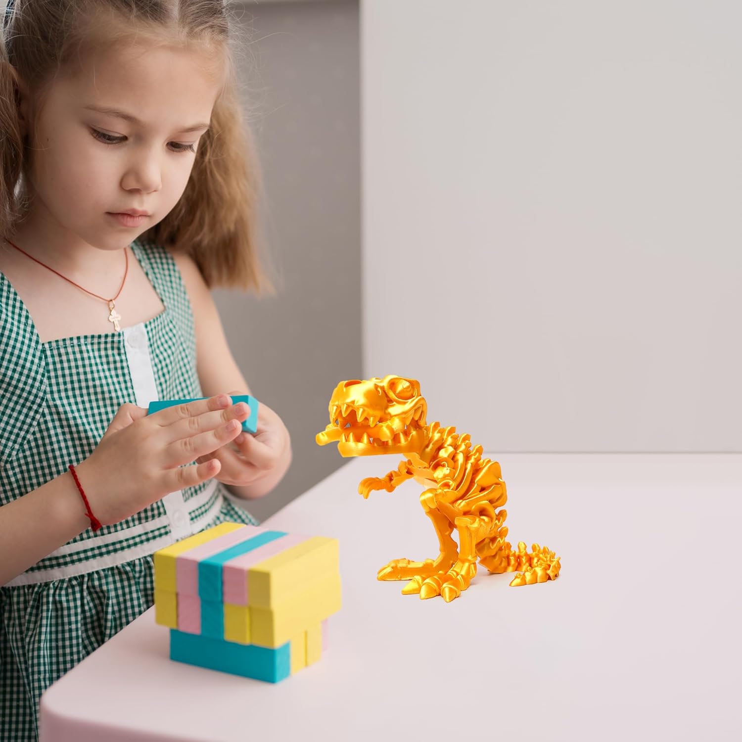 Flavery 3D Printed Dinosaur with Bones - 10 inch Flexible T-Rex Skeleton with Bones, 3D Fidget Toy, Birthday Gift, Dragon Collection, Desk Executive Toy - Gold
