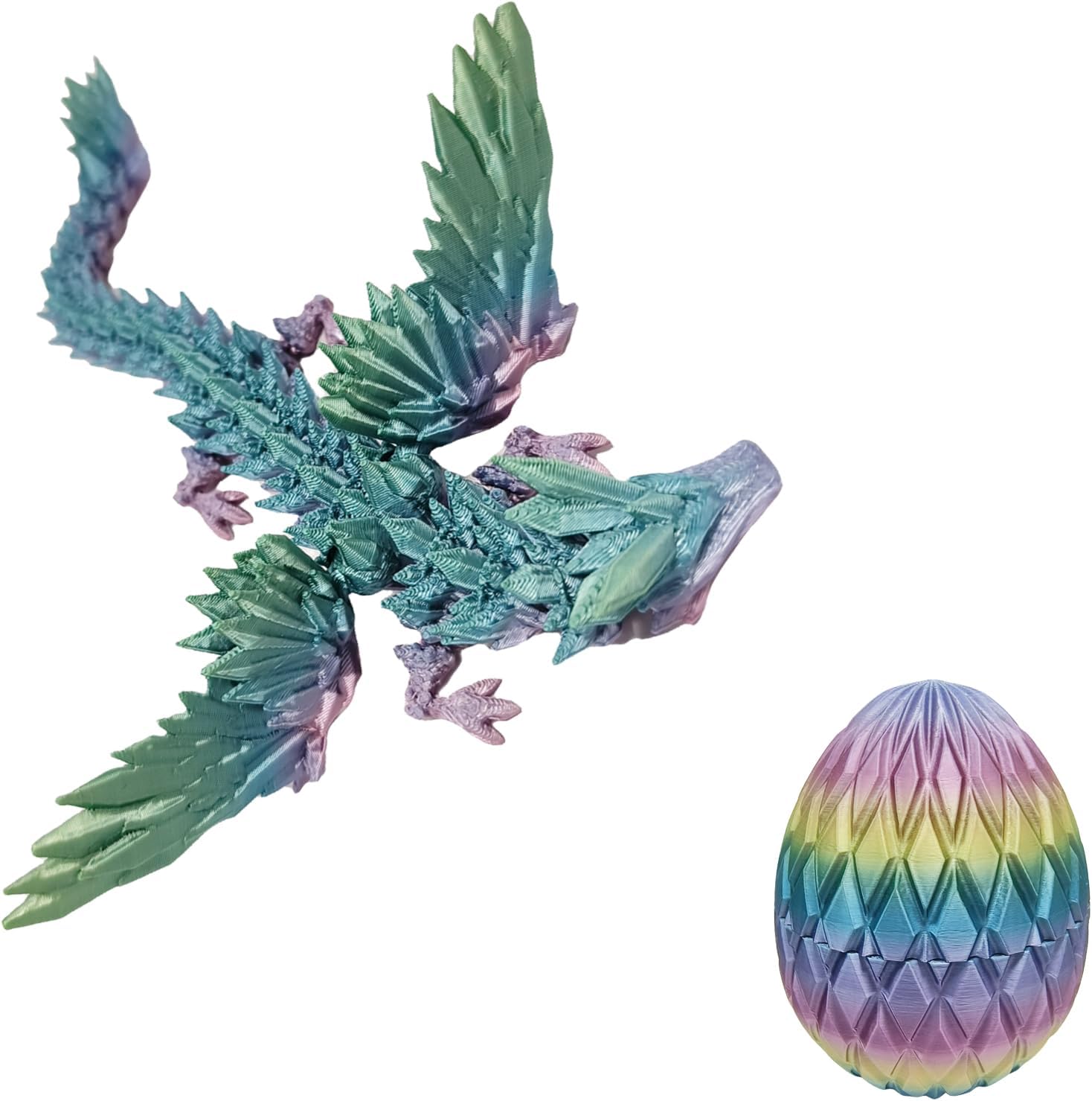 3D Printed Dragon Eggs with Dragon Inside Fidget Toys for Adults, 3D Printed Articulated Dragon, Home Office Decor Executive Desk Toys Posable Flexible Crystal Dragon Toy(Rainbow)