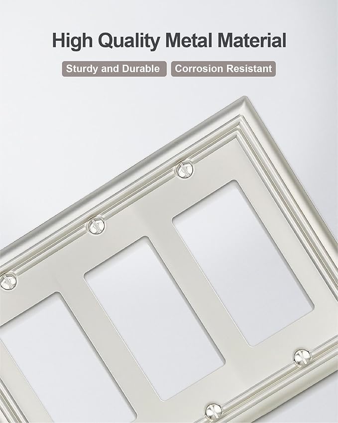 - 【Durable Steel】Made from durable metal, the triple decorator wall plate cover protects rocker switch or toggle switch from abrasion and impact