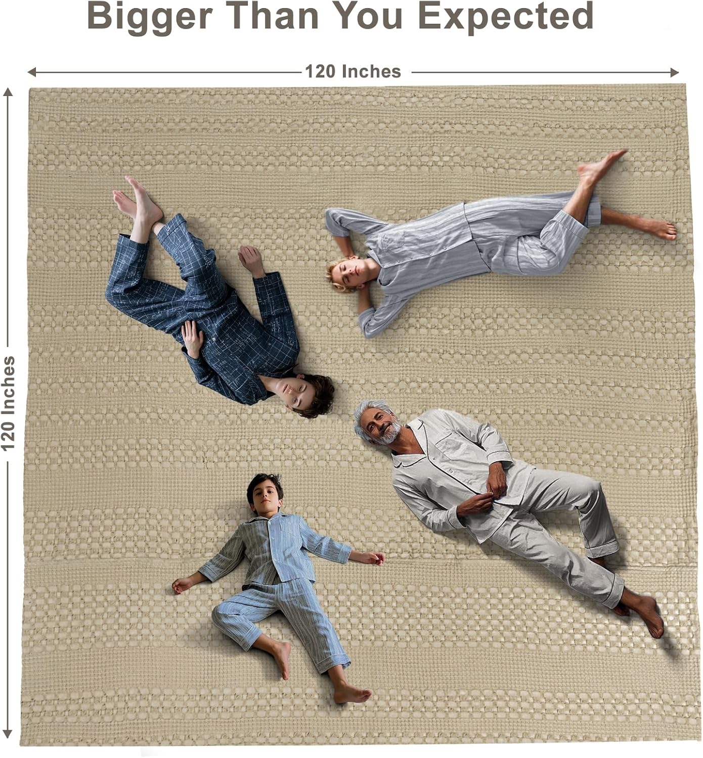 PHF 100% Cotton Waffle Blanket Oversized King 120"x120", Lightweight Breathable Extra Large 10'x10' Summer Blankets for Bed, Giant Big Luxury Aesthetic Woven Bedding for Home Decor, Khaki
