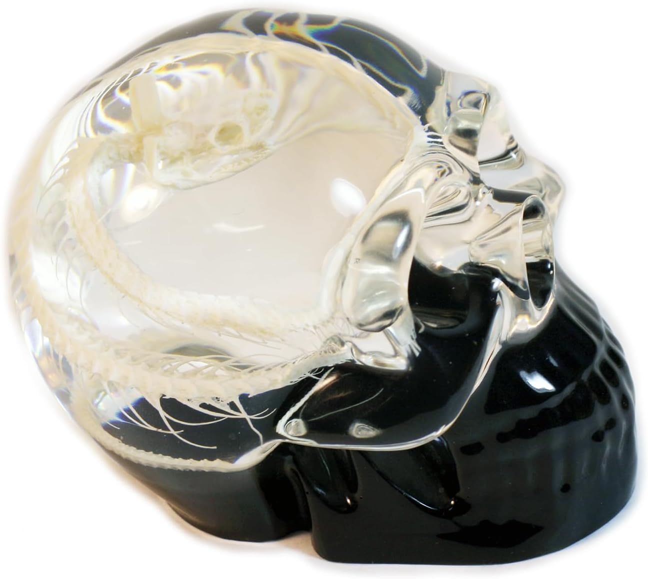 REALBUG 4" Real Snake Skeleton Desk Decoration in an Acrylic Skull with Black Background