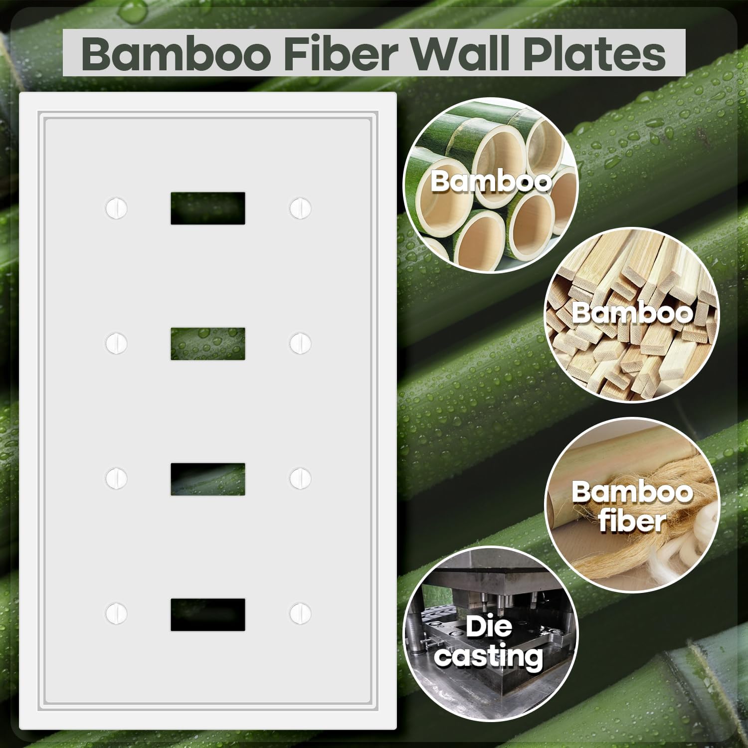 - Natural material: The quad toggle light switch covers is made of new natural material, this material is different from traditional plastic, so our wall plates with waterproof, moisture-proof, dust-proof, not easy to bend