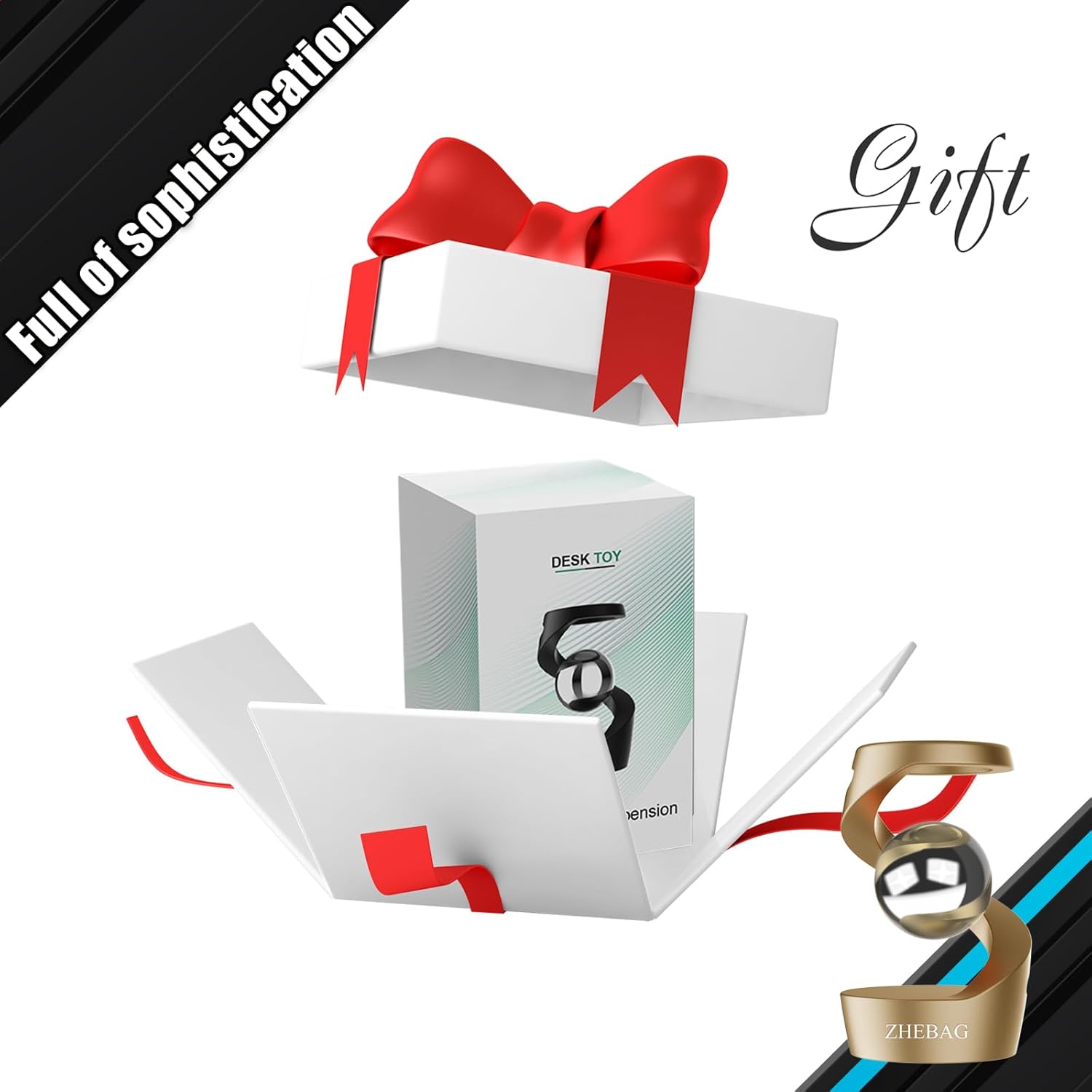 - 【Innovative Design】The adult office desk toy metal ball is fixed on the S shaped aluminum alloy body with screws. Spin the Adult Desk Fidget toys with just the right amount of force and skill and you can see a mesmerizing optical illusion effect where the metal ball inside feels like it's floating inside the main body of the Executive Spin Desk Toy (Don't rotate the tabletop toy too hard, as this will better reflect the suspension of the metal ball and also prevent it from tipping over).