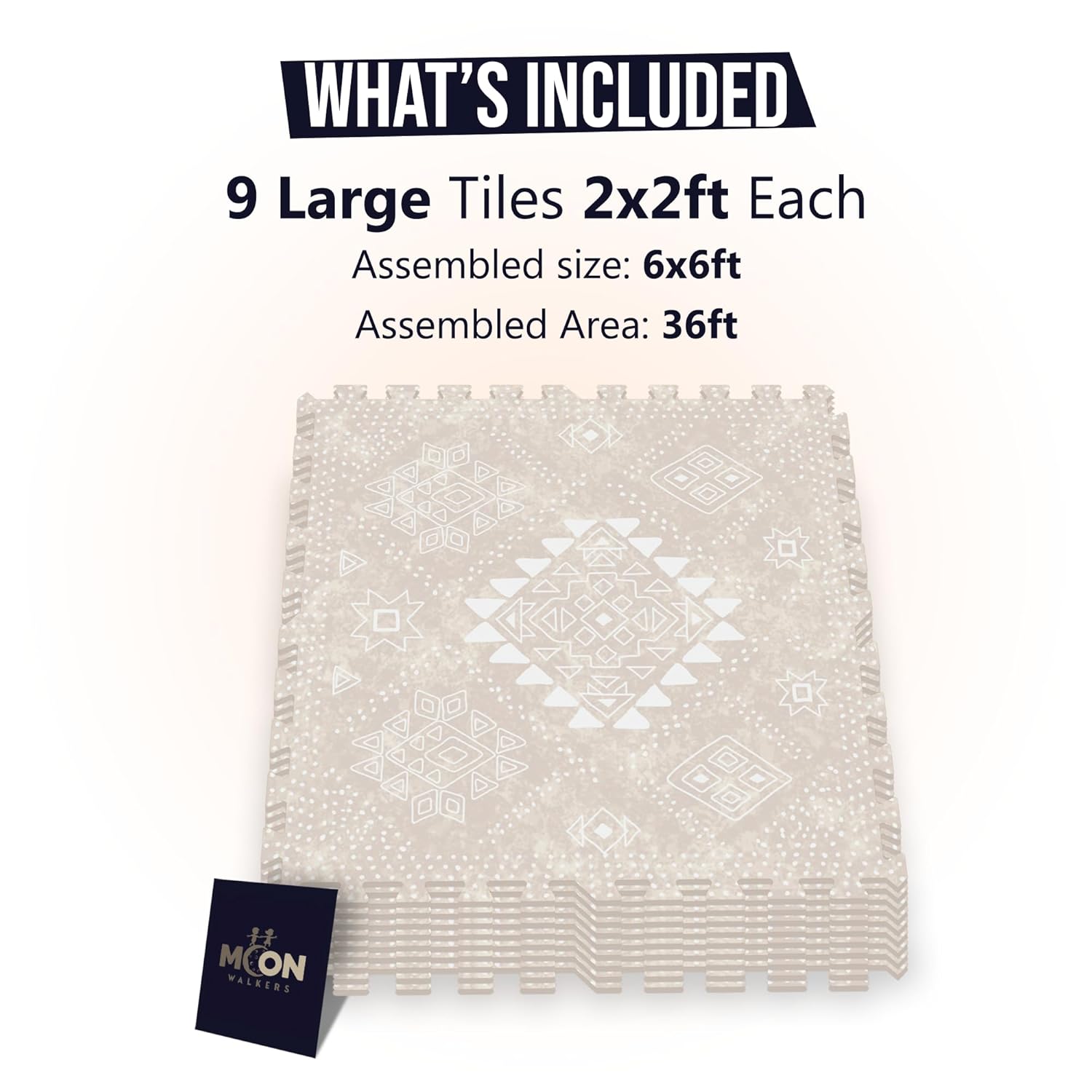 MOON WALKERS Stylish Boho Baby Play Mats for Floor, Play Mat for Babies and Toddlers, Non-Toxic, Soft, Thick, Tummy Time Mat for Crawling (Moon Mist, Extra Large 6x6ft | 9 Tiles)