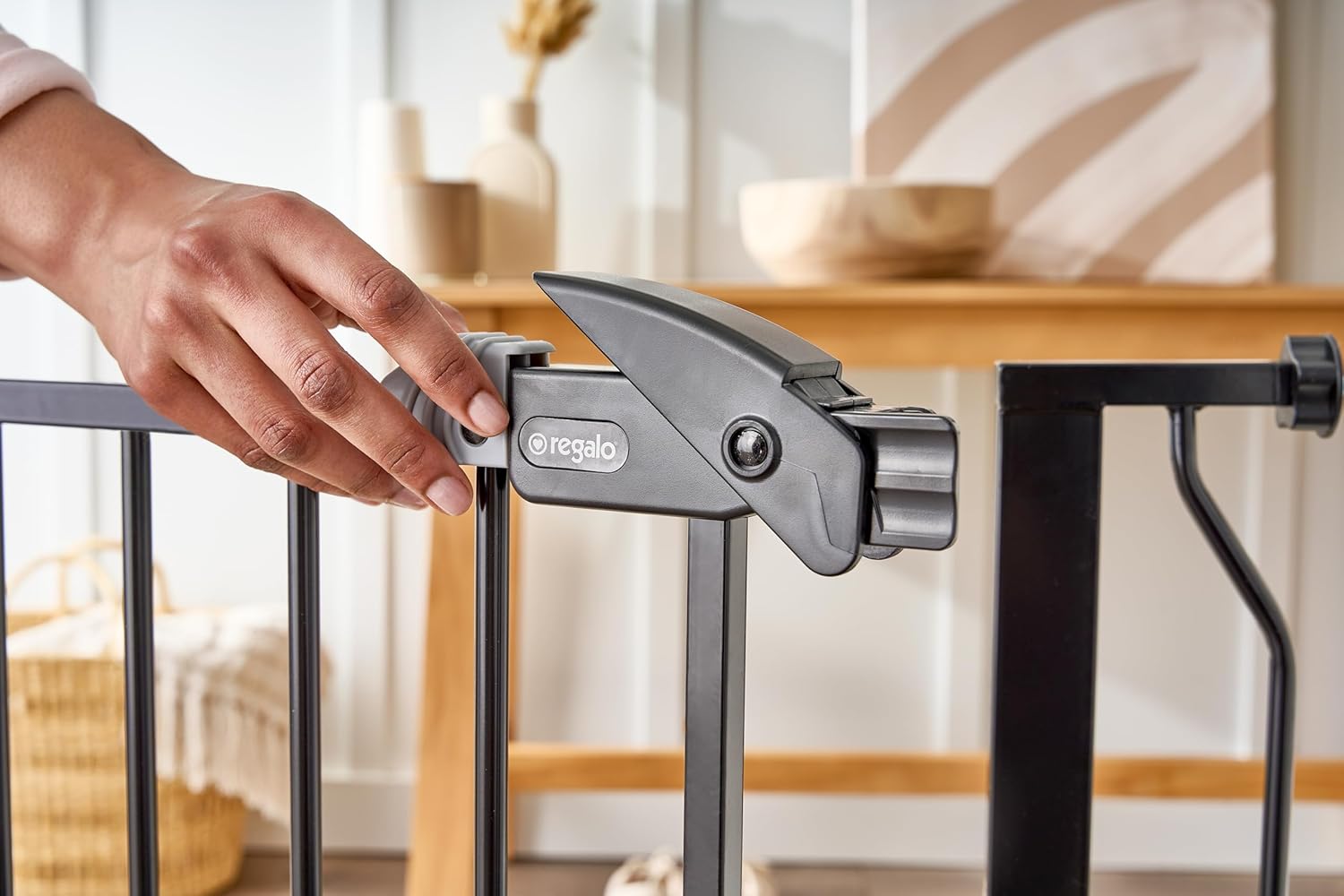 Regalo Easy Step 38.5-Inch Wide Walk Thru Baby Gate, Includes 6-Inch Extension Kit, Pressure Mount Kit, Wall Cups, Black
