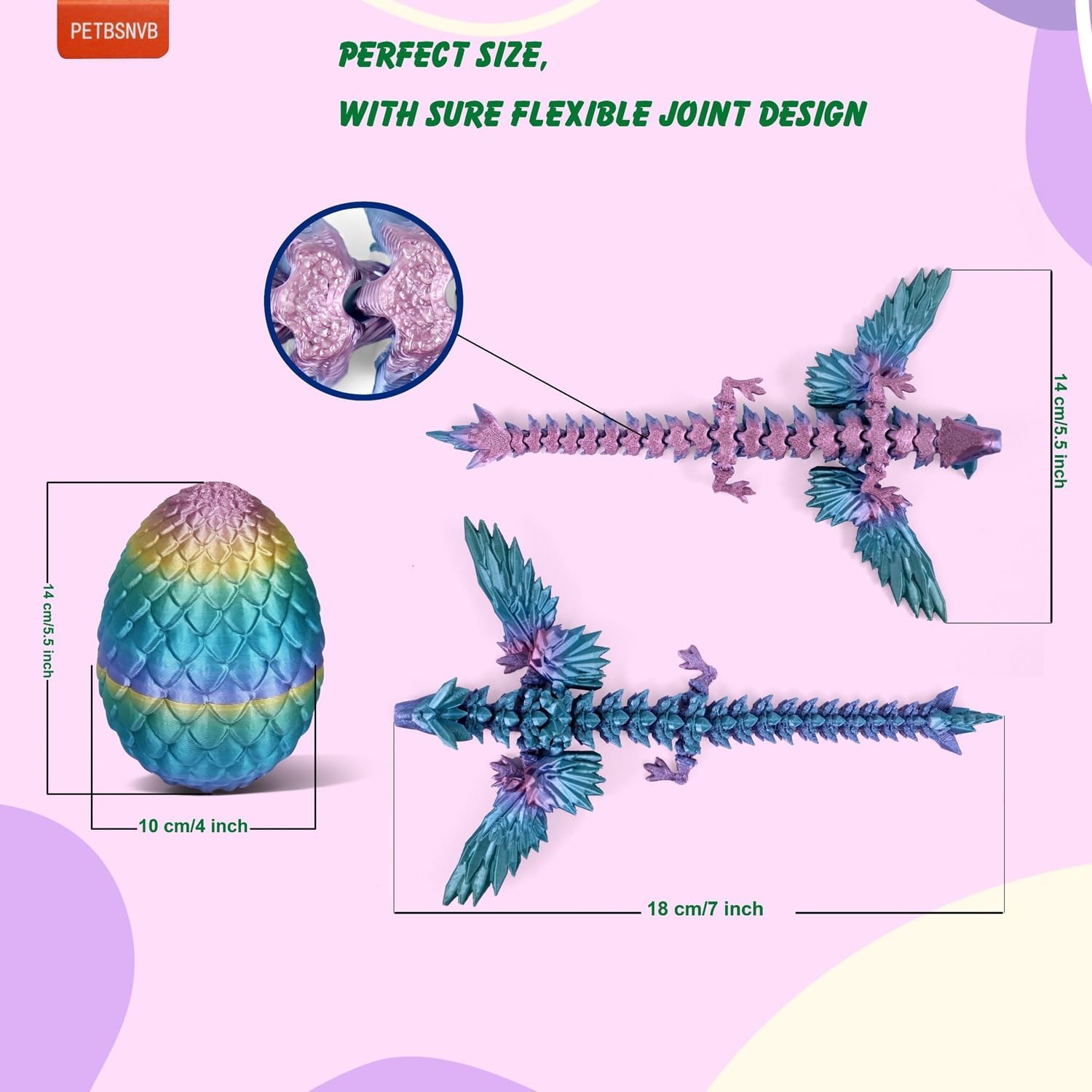 7" 3D Printed Dragon with Wings in Egg, Easter Basket Stuffers, Crystal Dragon Surprise in Eggs, Articulated Dragon, Dragon Fidget Toy, Home Office Decor Executive Desk Toy (Laser Purple)