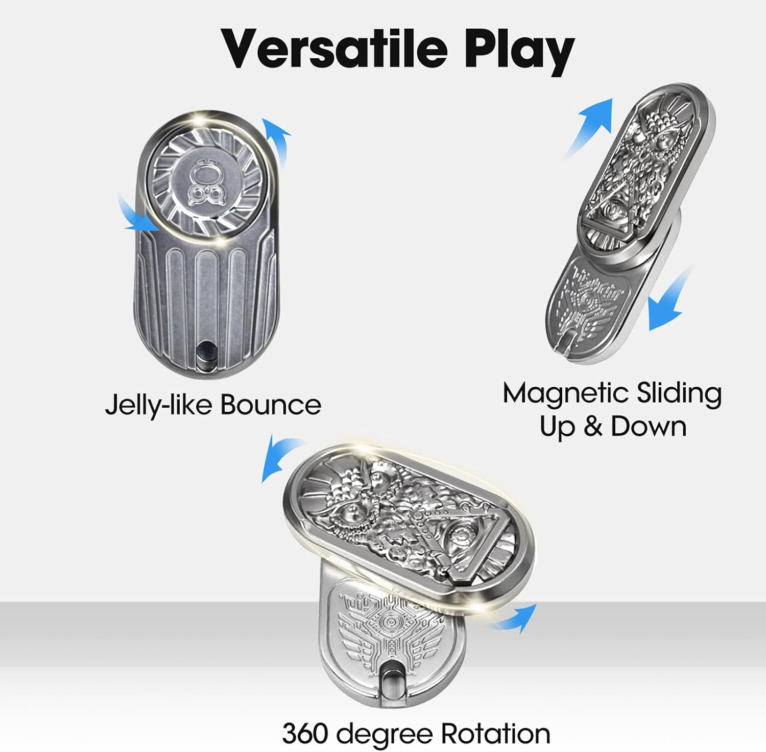 - 【Versatile Play】 This metal fidget slider offers three unique play modes: a jelly-like bounce, traditional magnetic sliding, and 360-degree rotation with minimal noise.