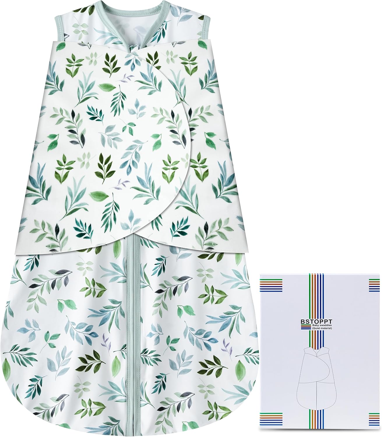 Newborn Sleep Sack Baby Swaddle,Swaddle me 6-12 Month,3-Way Adjustable Wearable Blanket,100% Rayon Cotton Swaddling Sleeping Bag,TOG 0.5 (Leaf, 6-12 Months)