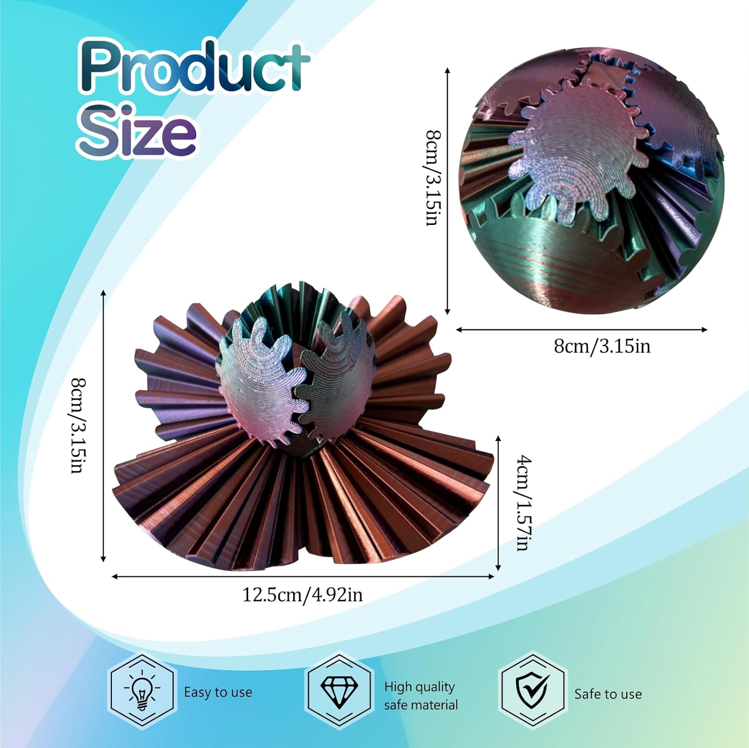 - Dynamic Rotation and Shape Change: This 3D printed gear ball consists of interlocking gears. The gear ball can not only rotate 360 ββdegrees, but also display various shapes as you operate it. Whether it is touched, rotated or flipped, it can provide a unique tactile and visual enjoyment