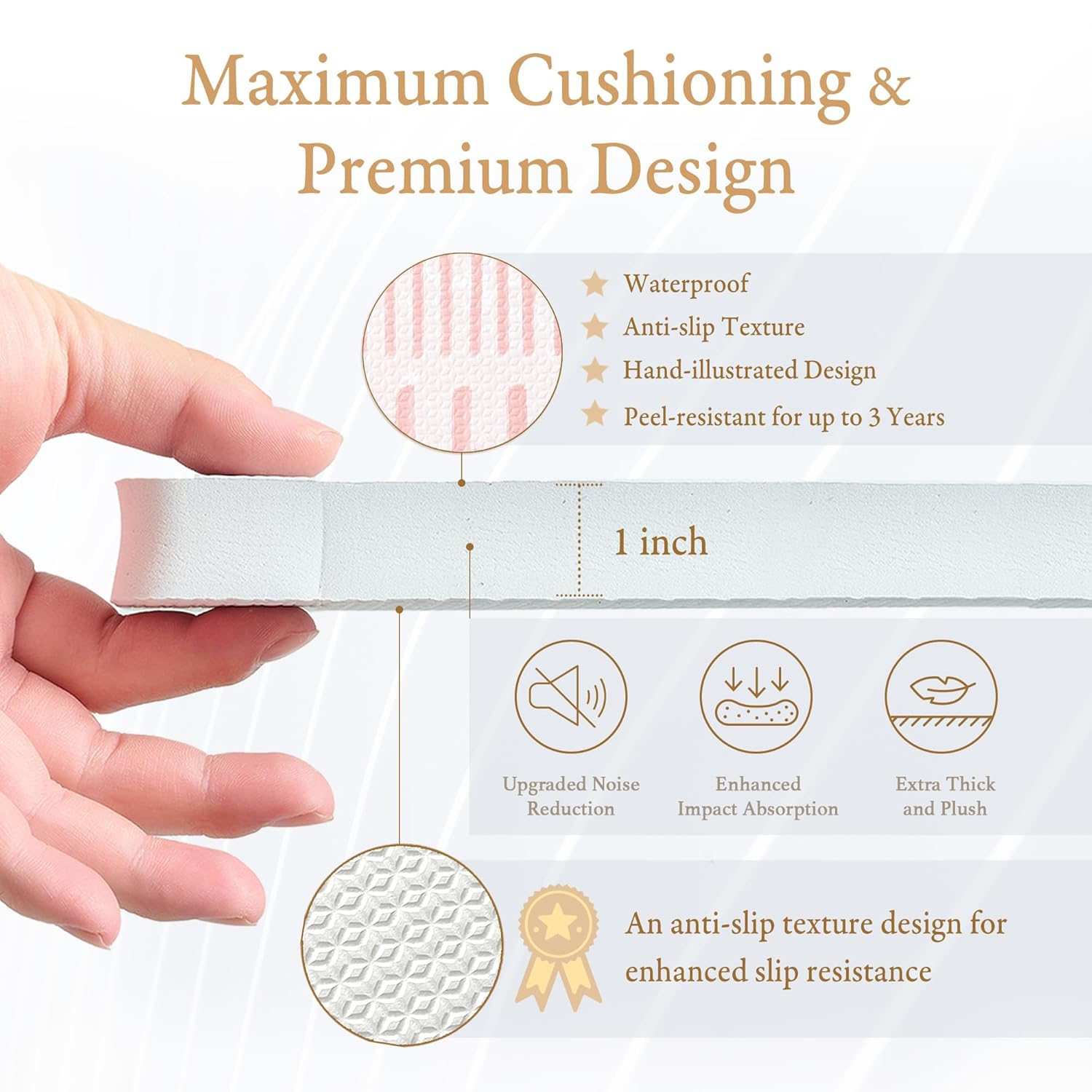 - 【Enhanced Specifications】Include 6 interlocking 24x24x1 inches tiles & 10 border pieces. Each 1-inch thick tile weighs 800g, offering stability and security. The mats cover a large surface area, making them perfect for any playroom or nursery. They are ideal for high-traffic areas, providing a robust and reliable play surface for your children. To maximize both the aesthetics and functionality of your play mat, choose a size configuration that covers the entire room/space.