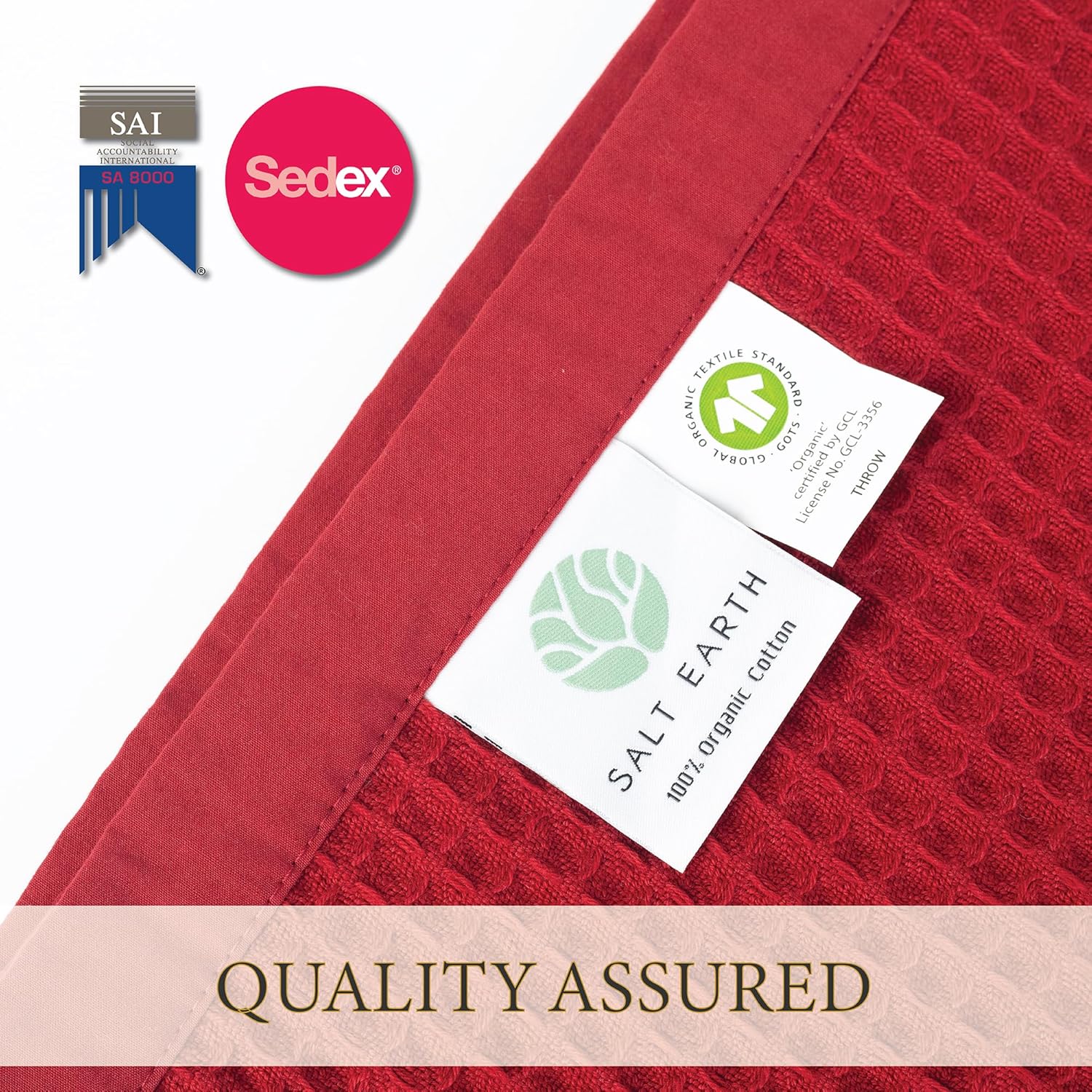 Salt Earth GOTS Certified 100% Organic Cotton Throw Blanket, 55" x 60" Waffle Blankets & Throws for Bed, Throw Blanket for Couch, Modern & Cozy Blanket, All Season,Comfy & Soft Blanket(Red Dahlia)