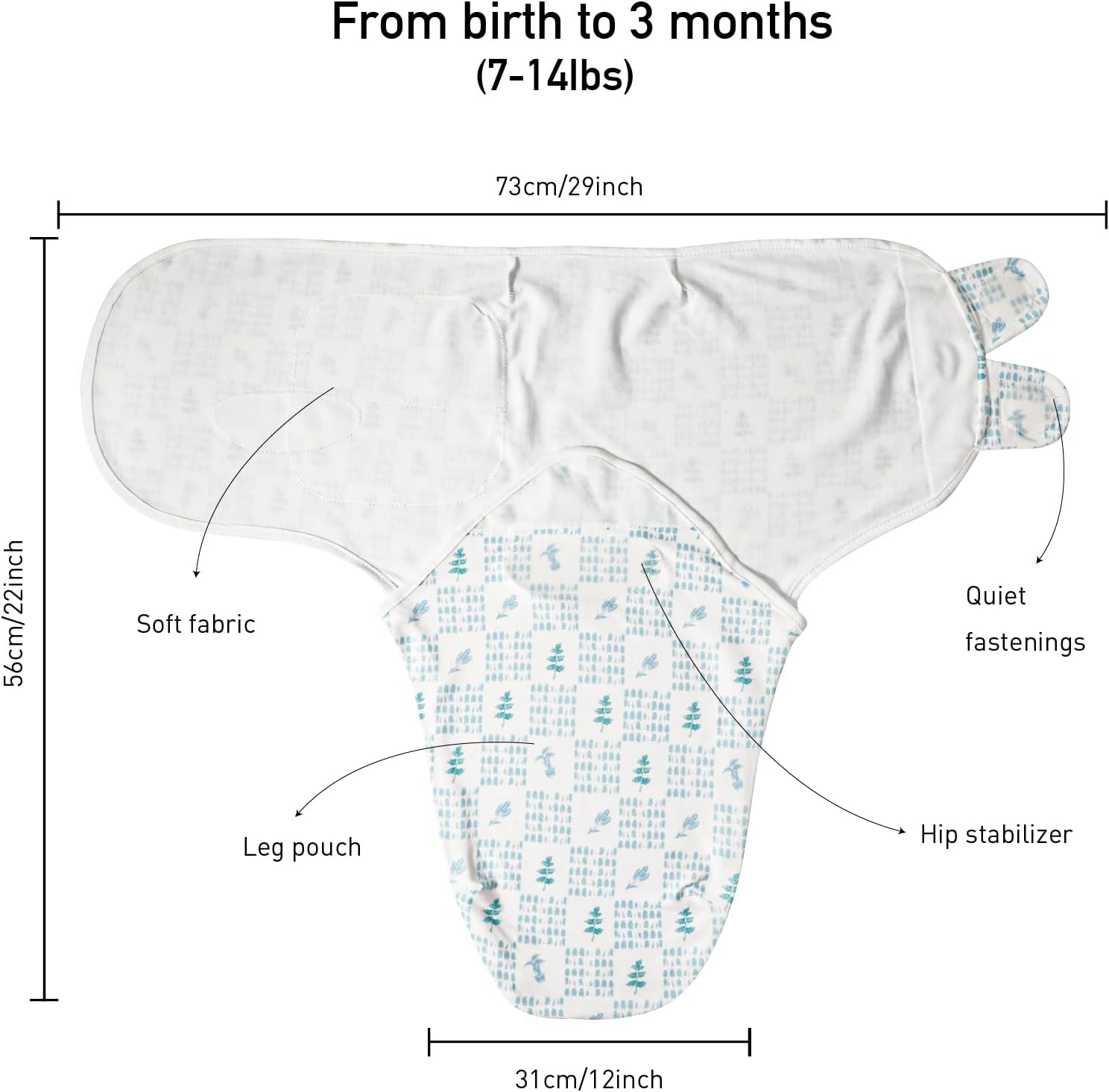 - ADJUSTABLE FIT FOR YOUR BABY: The adjustable baby swaddle sleep sacks comes with soft fabric wings with secure hook and loop attachments, so you can easily adjust and achieve the ideal baby fit, helping to prevent the startle reflex and providing your baby with a soothing and comforting swaddling experience that mimics the womb environment.