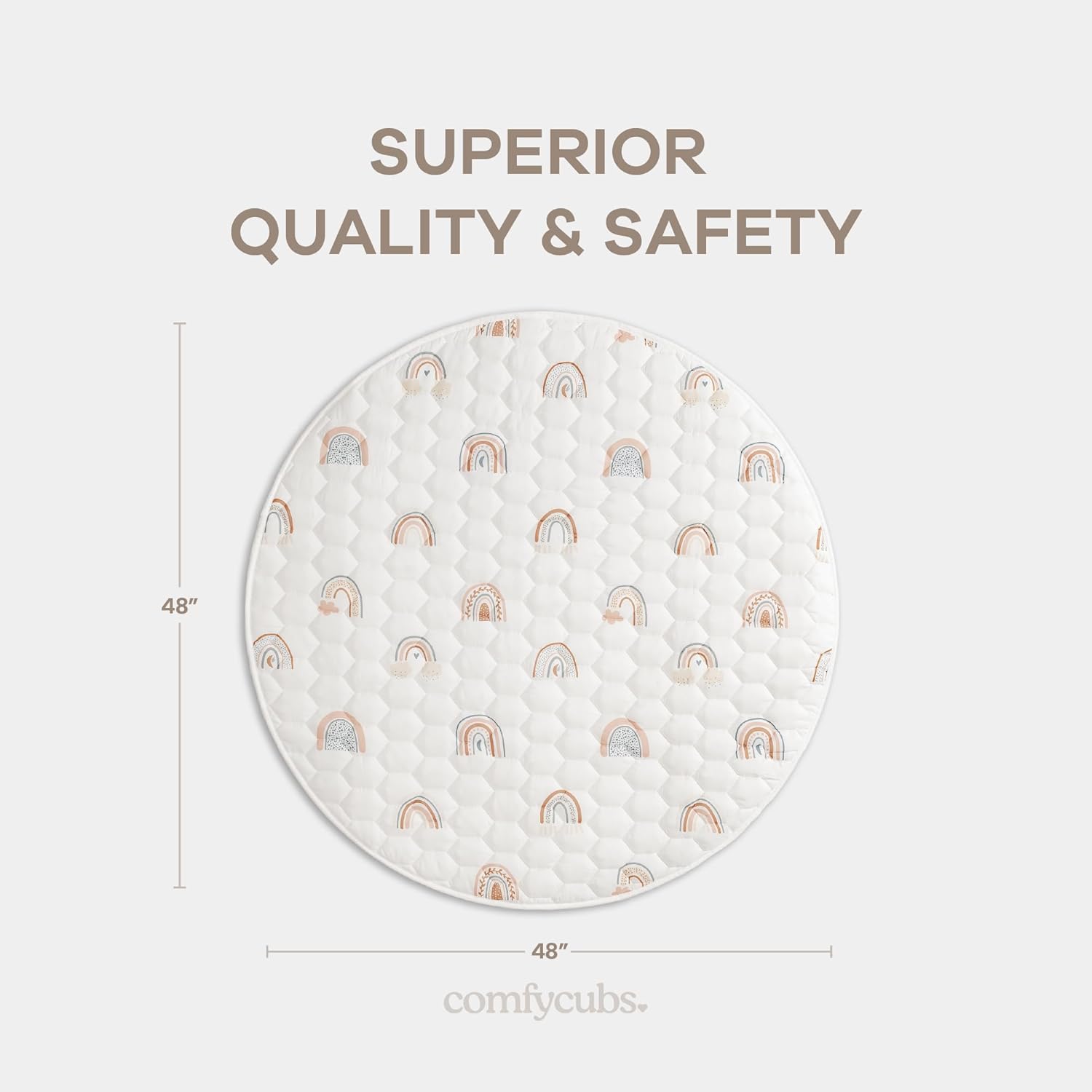 Comfy Cubs Round Kids Play Mat - Medium 48 inches Soft Quilted Baby Floor Mat with Non-Slip Bottom - Plush Design for Toddlers' Playtime and Relaxation - Comfortable and Durable - Rainbow