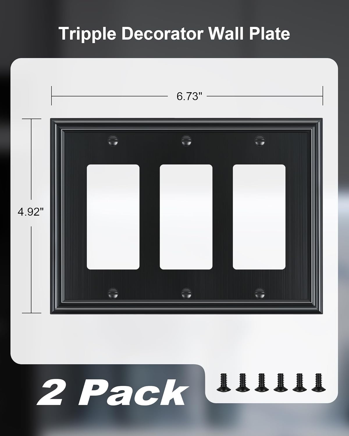 - Specification - Pack of 2 tripple decorator metal wall plates, size at 6.73''W*4.92''H. Easy replacement of any wall plate with the same configuration, making it a convenient choice for remodeling or upgrading your home. Backed by a one-year warranty to ensure your peace of mind and complete satisfaction.