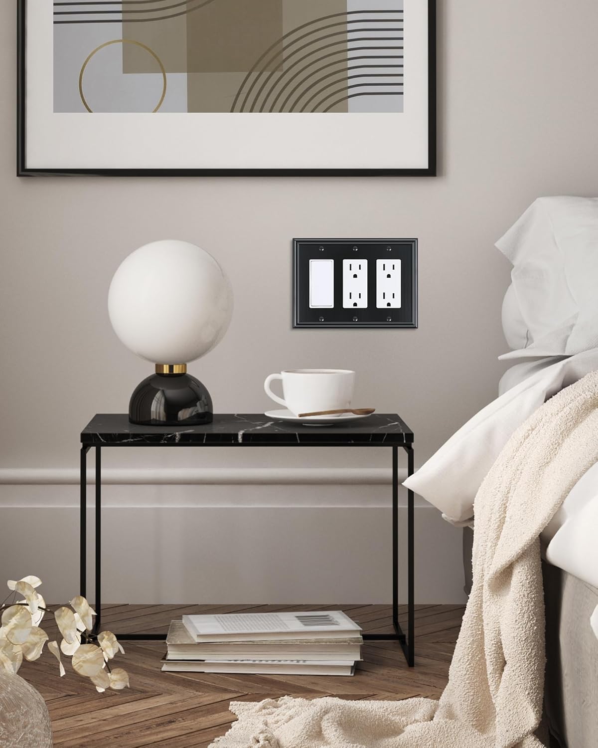 - Elevate Home Charm - Features simple, clean, and elegant lines with brushed texture, the black finish wall plate can easily blend into any interior design style, offering a sophisticated look and adding elegance to your decor.