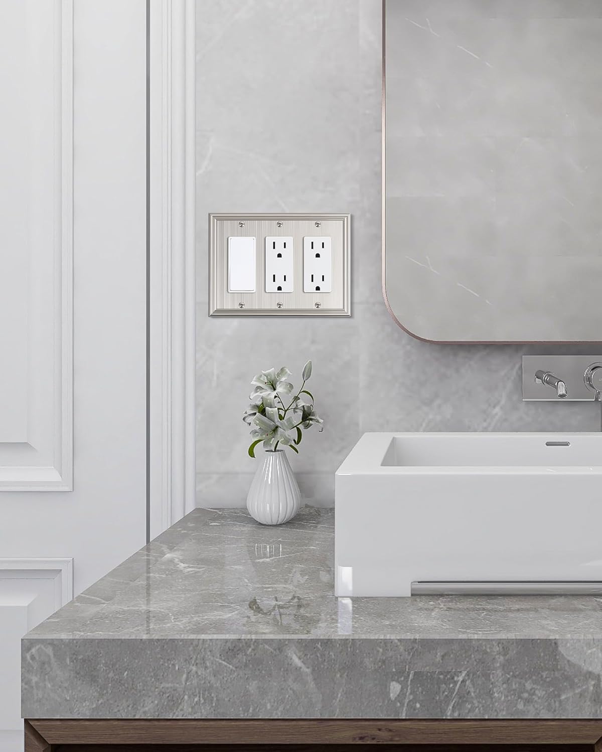 - Elevate Your Decor - The brushed nickel wall plate boasts simple, clean, and elegant lines with brushed texture. Its sleek and modern design, adds a touch of elegance and a refined decorative accent to any room, seamlessly integrating into any decor style and providing a timeless yet sophisticated look that will make your decor stand out.