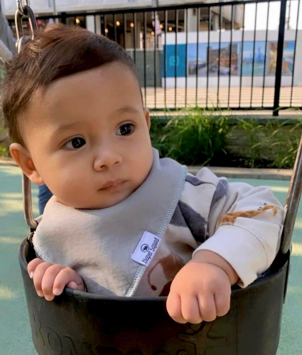 - 5-Pack Baby Bibs - Diaper Squad Bibs come in many designs, each pack offers gender neutral options to easily match your baby’s daily outfit. The soft and breathable fabric of these absorbent baby bibs ensure your little one stays cool while still catching drool while teething, they are great as baby spit up bibs, which makes them newborn essentials must haves.