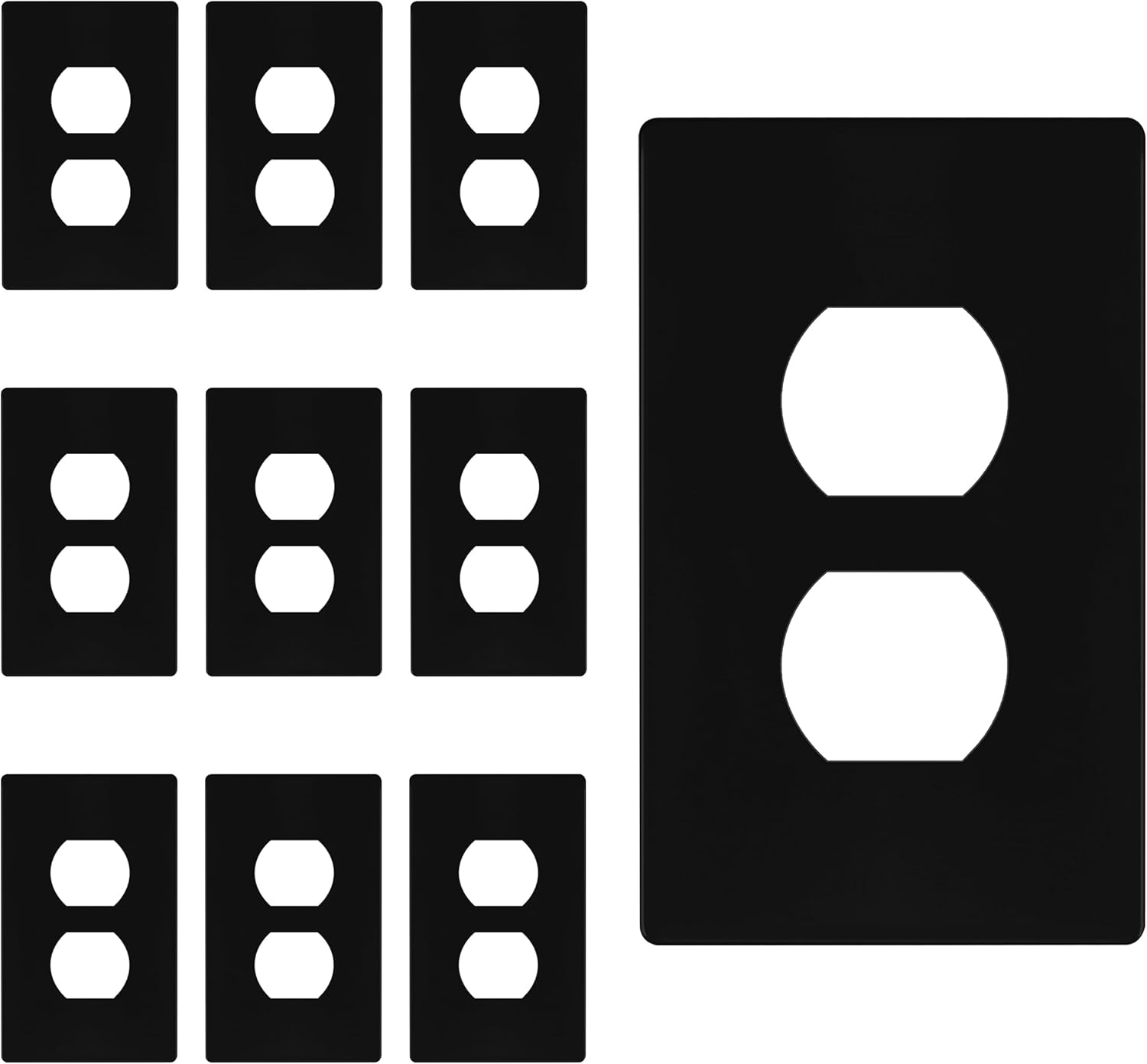 TG SP-S1-BK Duplex Outlet Receptacle Cover, Screwless Wall Plate, Standard Size, 1-Gang 4.68" x 2.93", Unbreakable Polycarbonate Thermoplastic, UL Listed, SP-S1-BK-10PCS, Black, 10 Pack