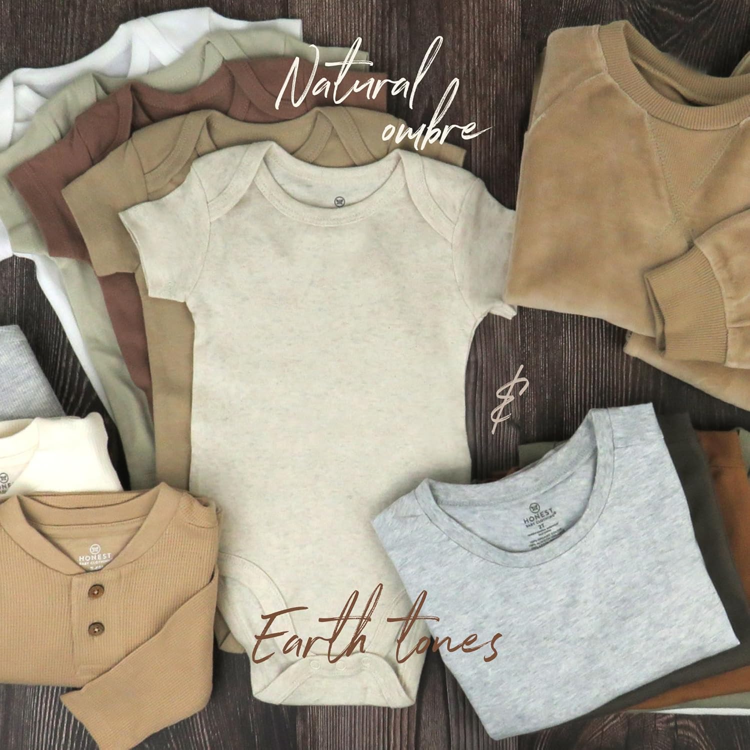 HonestBaby 5-Pack Short Sleeve T-Shirts 100% Organic Cotton Baby, Toddler, Little Kid, Boy, Girl, Unisex
