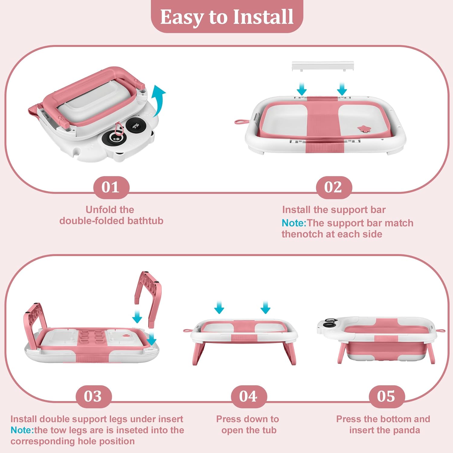 Foldable Baby Bathtub, Lightweight Bathtub for Infants to Toddlers with Soft Cushion & Thermometer, Portable Baby Tub Newborn to Toddler 0-36 Months(Pink)