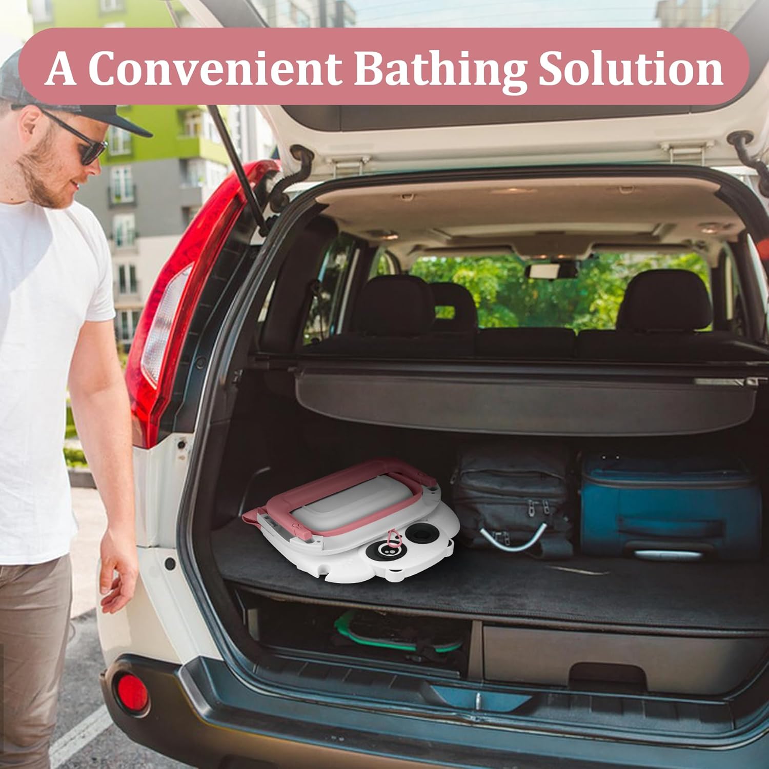 - Double-Fold & Detachable Leg Support: Our collapsible baby bathtub features an ingenious double-fold design, it even folds in half, folding the body into a square with a thickness of 4 inches. Convenient for storage and saving space!
