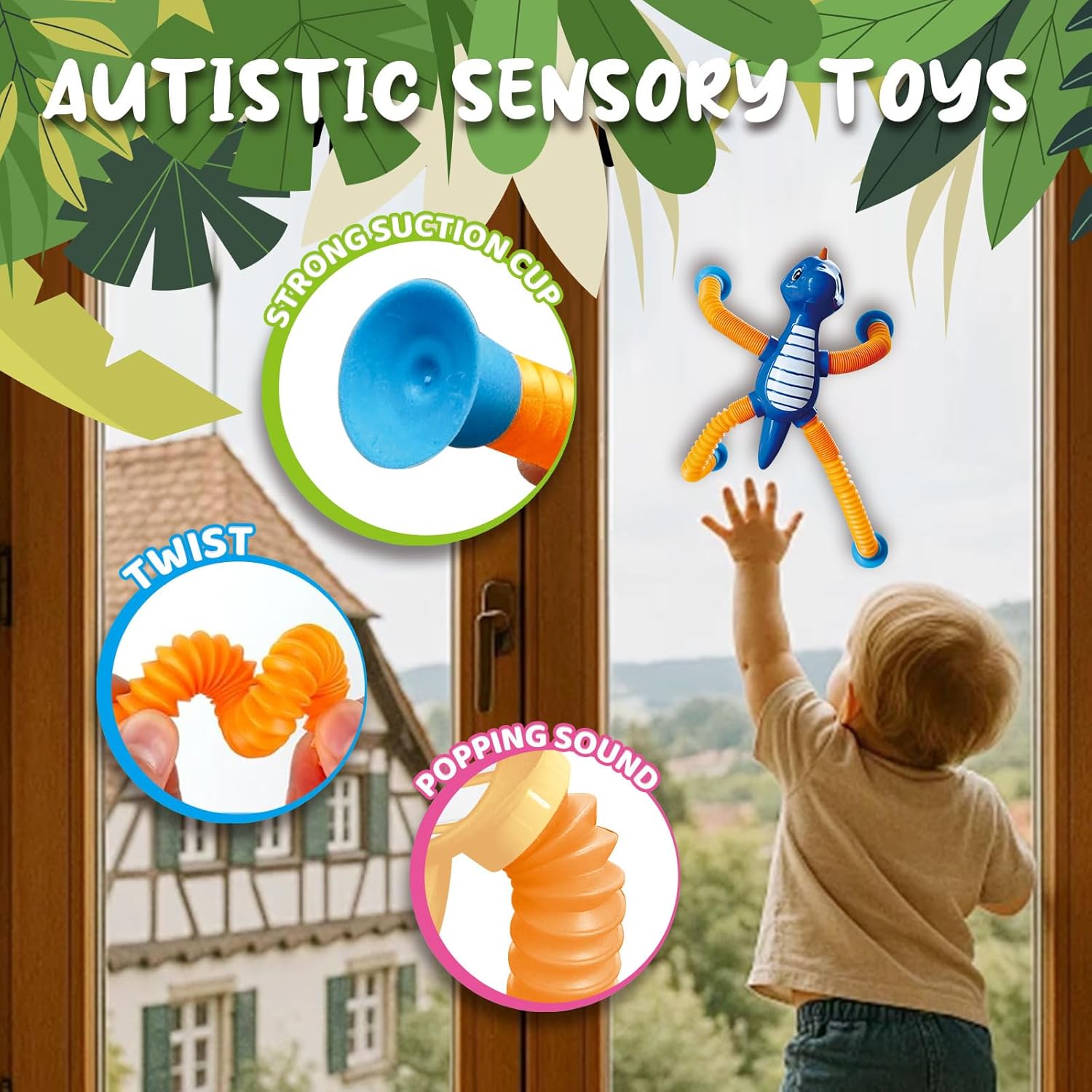 - 👼✨ 【FUN SENSORY TOYS FOR KIDS】: These all new design brightly colored dinosaur animal pop tube toys offer more than meets the eye. With pop tube arms and legs featuring uneven textures and satisfying popping sounds, they engage kids' senses and promote motor skill development. The added telescopic suction cup limbs enable them to attach to flat surfaces like windows or desks, introducing a new dimension of play and tactile sensation.