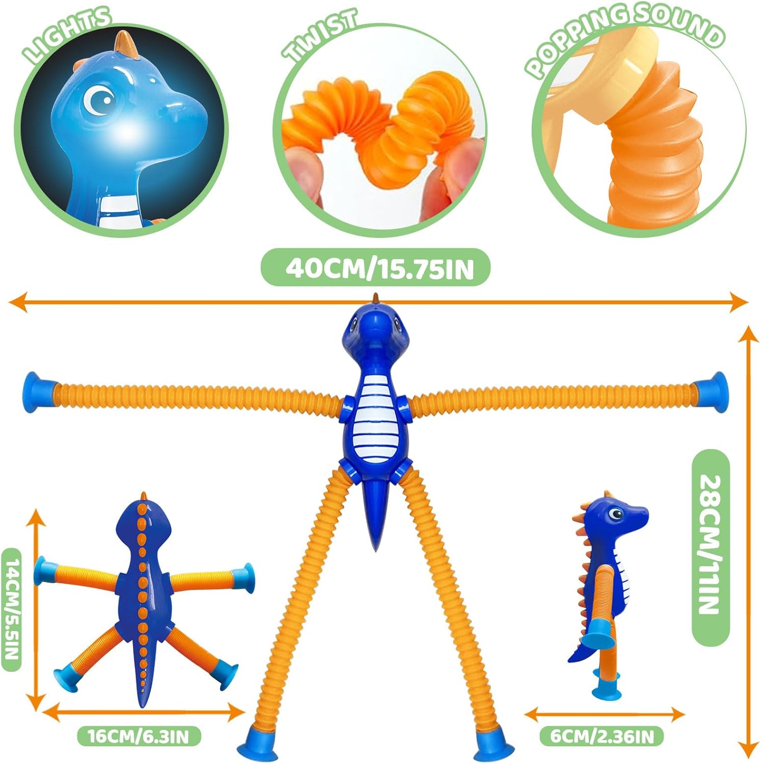 - 🎉🥳【VERSATILE PARTY DÉCOR】: Head will light up and shimmering with slight shaking, ideal for creating Party spirit. These dinosaur animal fidget pop tube sensory toys are perfect for birthday or Christmas themed parties, party decoration supplies, dinosaur games prizes gifts for classroom students, classroom treasure boxes.